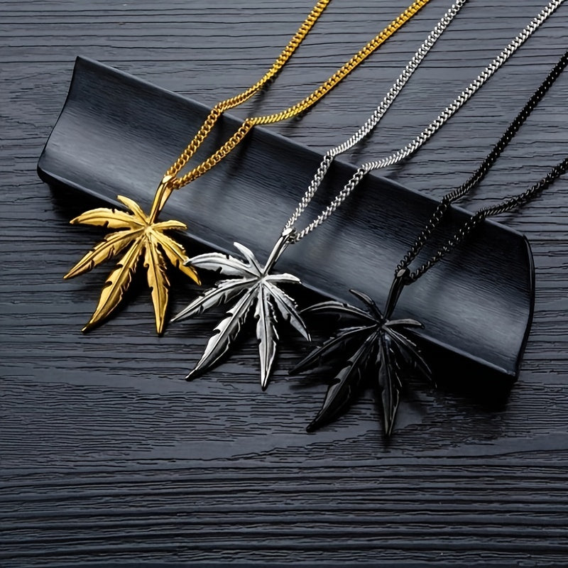 Stylish leaf pendant necklace designed for men, add a touch of nature-inspired flair to your look.