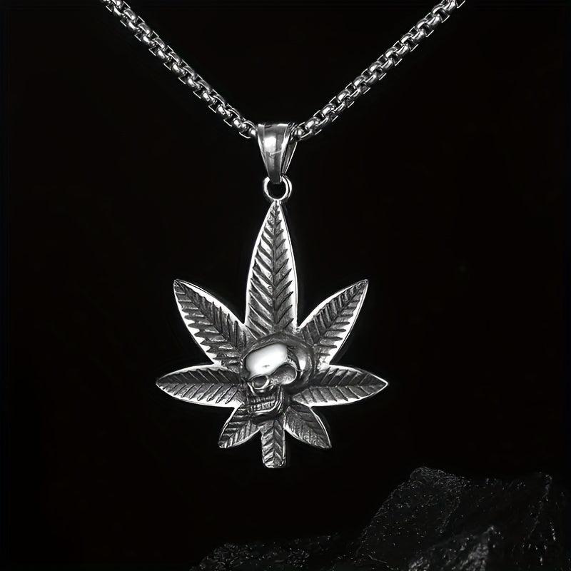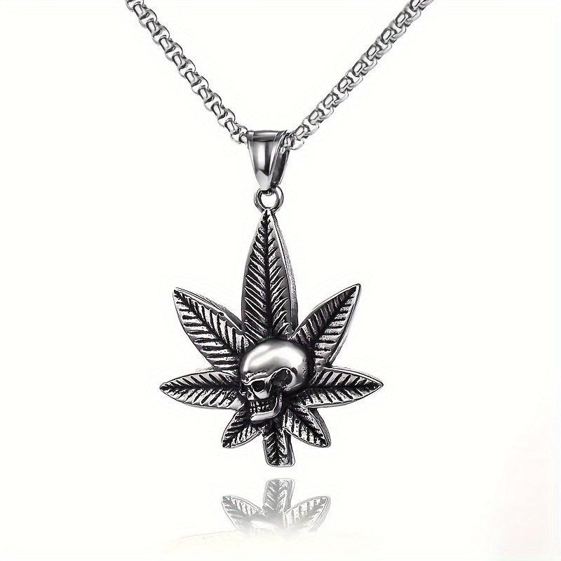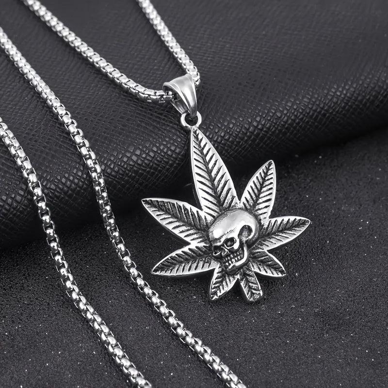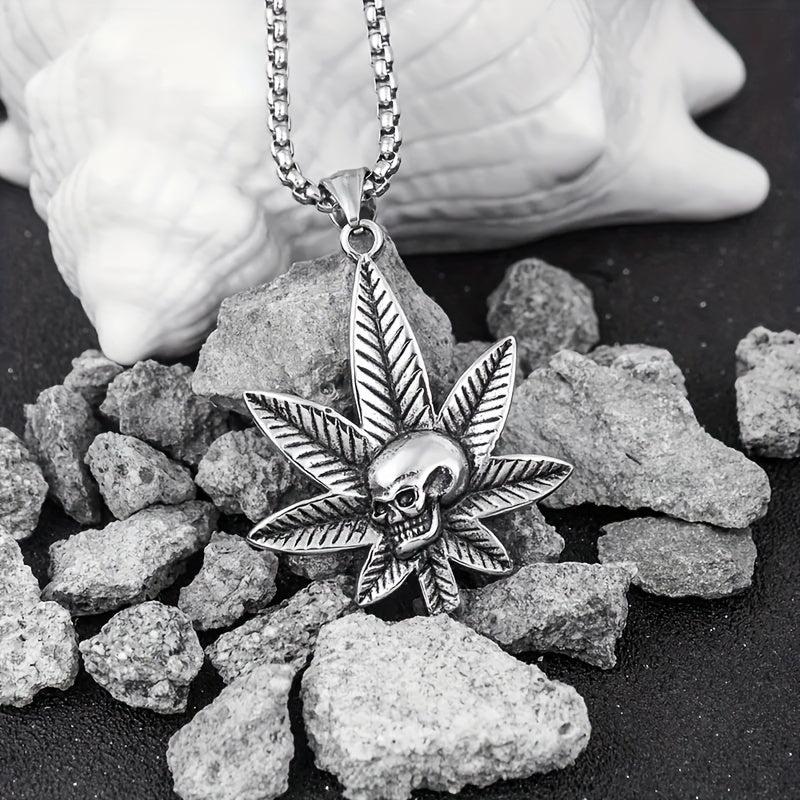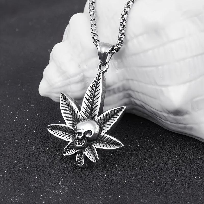 Add a touch of funky style to your look with this unique leaf skull pendant necklace.