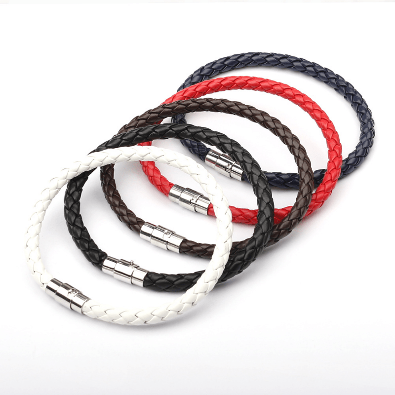 This stylish leather rope bracelet features a magnetic clasp and cross design, perfect for men who appreciate European and American fashion trends. Made of high-quality leather, this bracelet is durable and comfortable to wear.