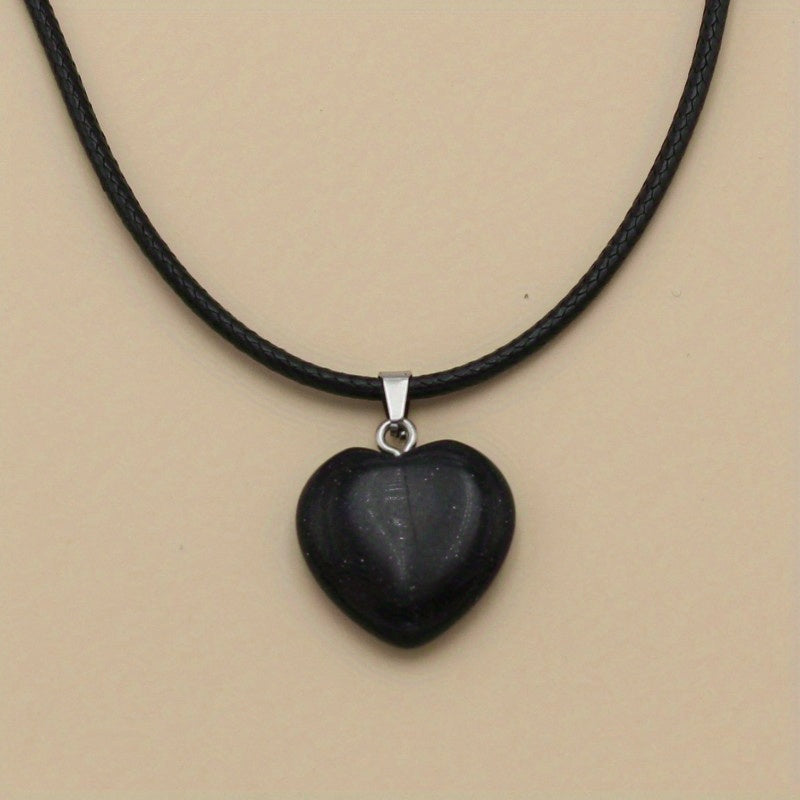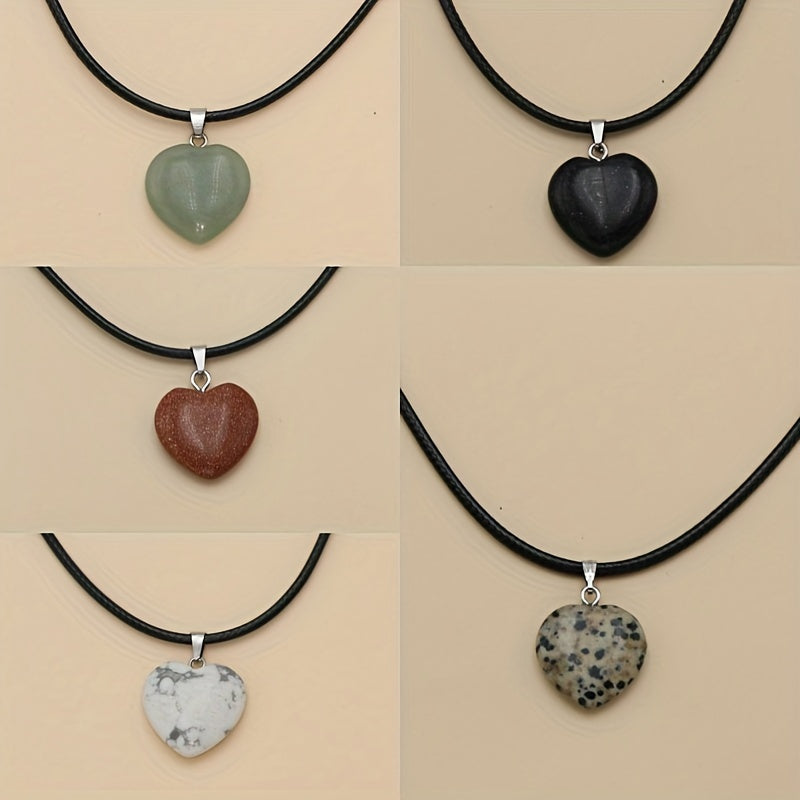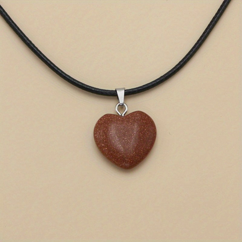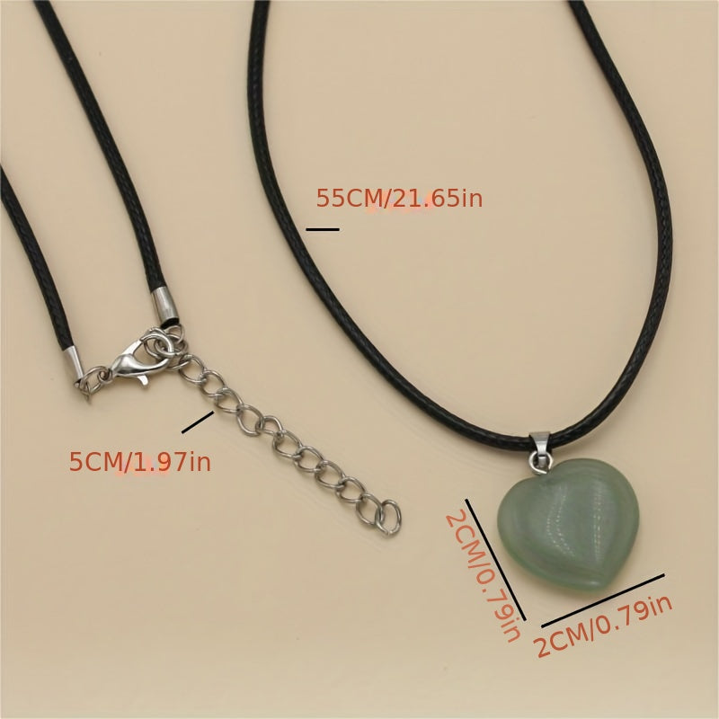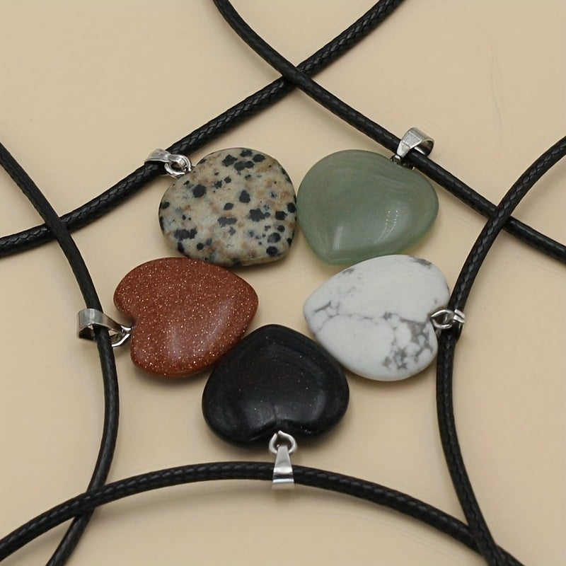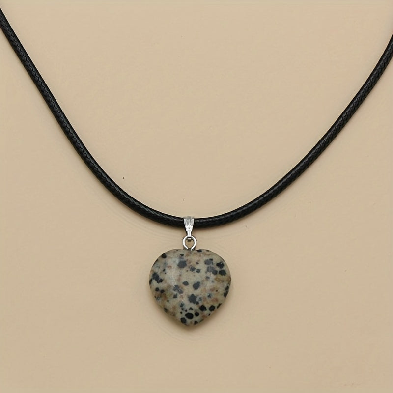 This pendant features a natural stone colorful peach heart design on a leather rope, perfect for adding a touch of style to your outfit.
