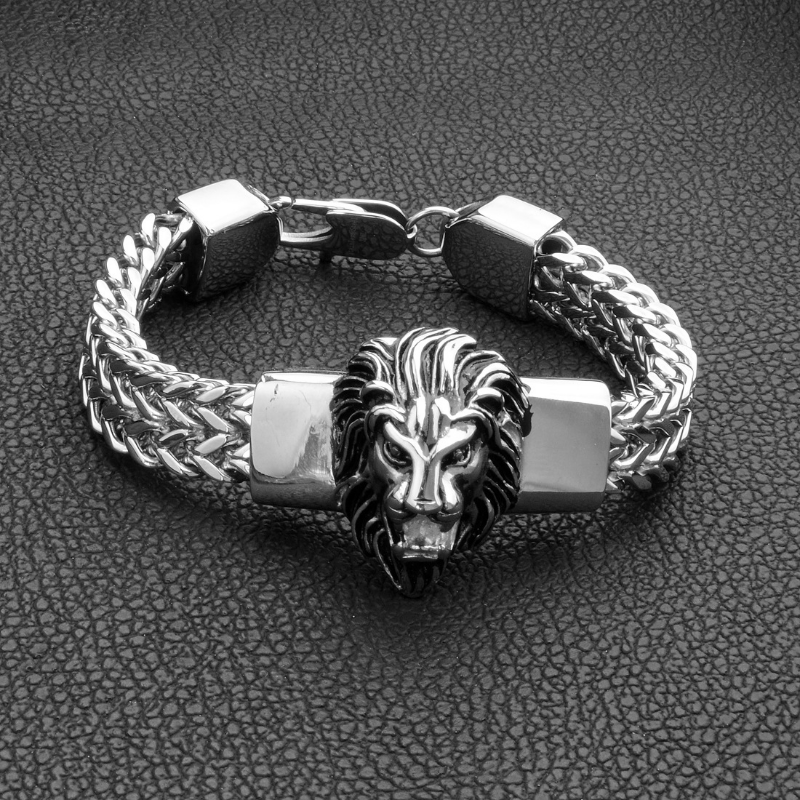 Elevate your style with this high-quality Men's Lion Stainless Steel Bracelet. The design features bold chain links and a lion head accent, making it a fashionable choice for any occasion.