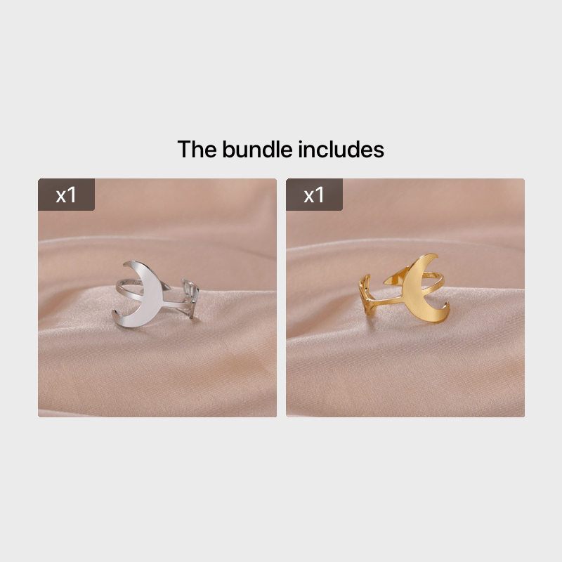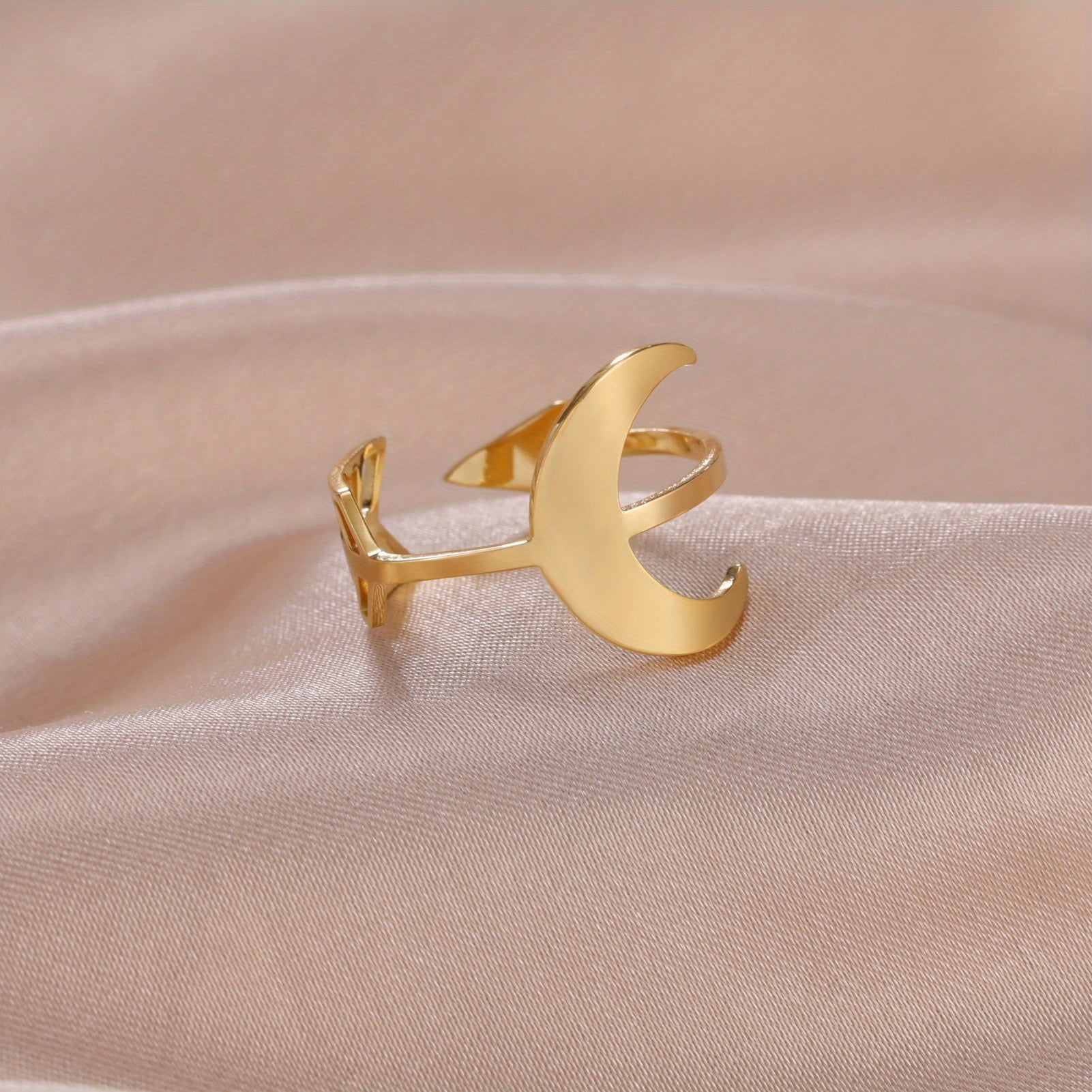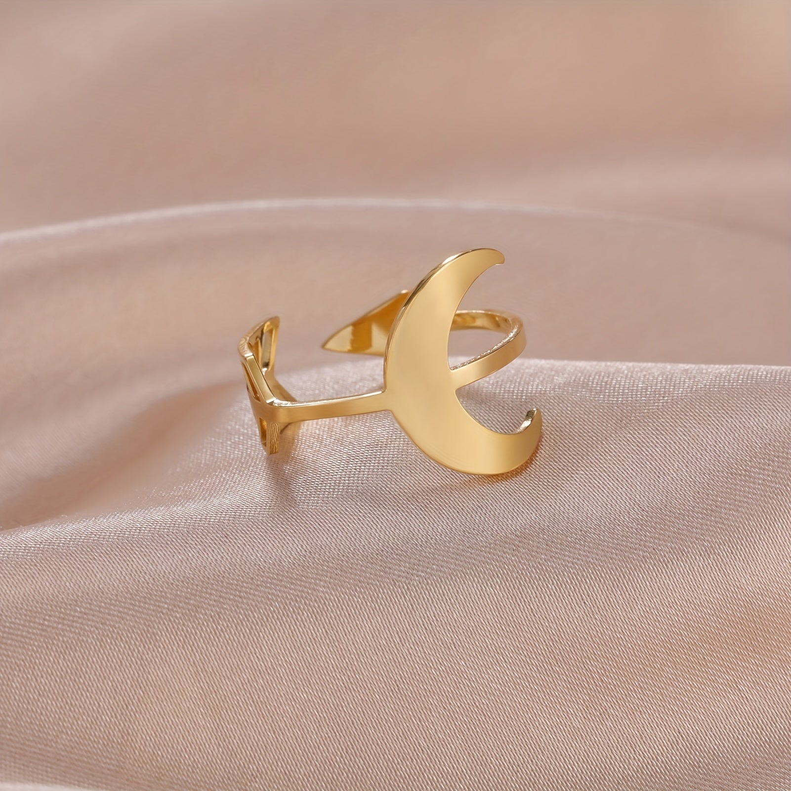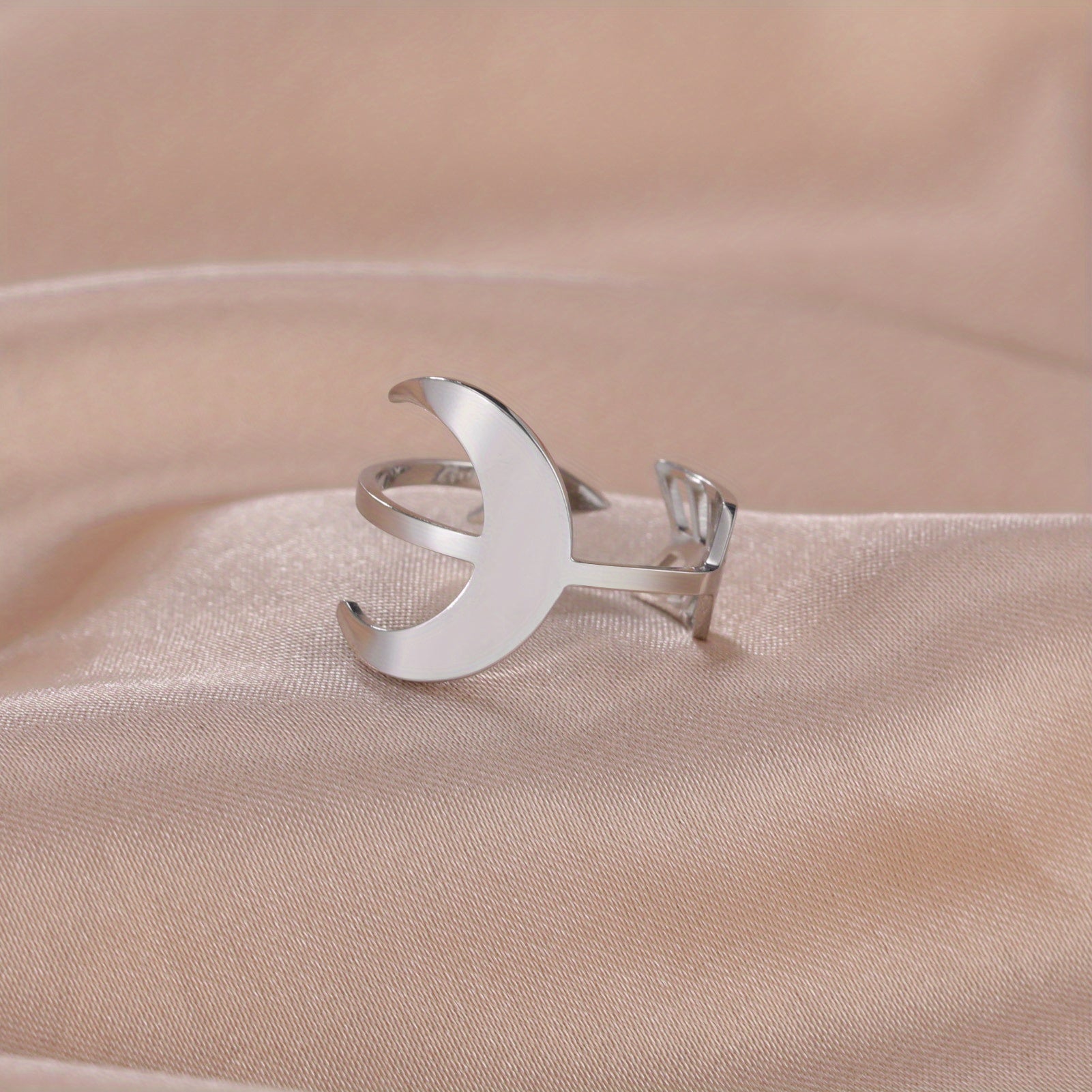 This stylish stainless steel ring features a moon and arrow design. It is adjustable to fit most sizes, making it a versatile piece of jewelry for any occasion.