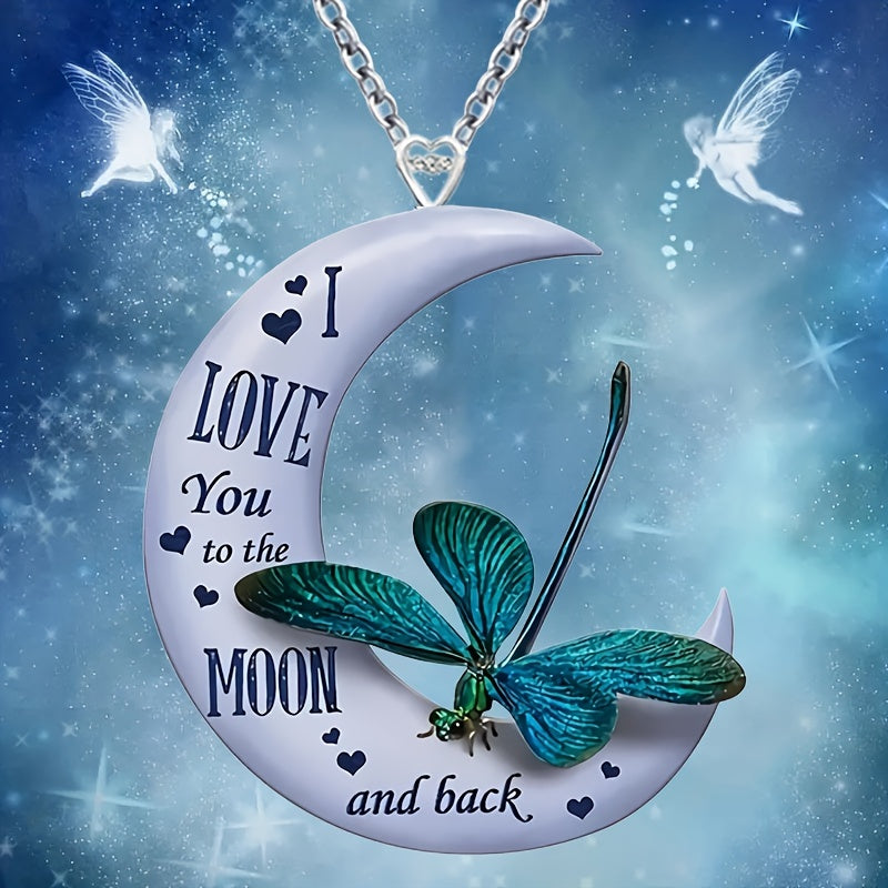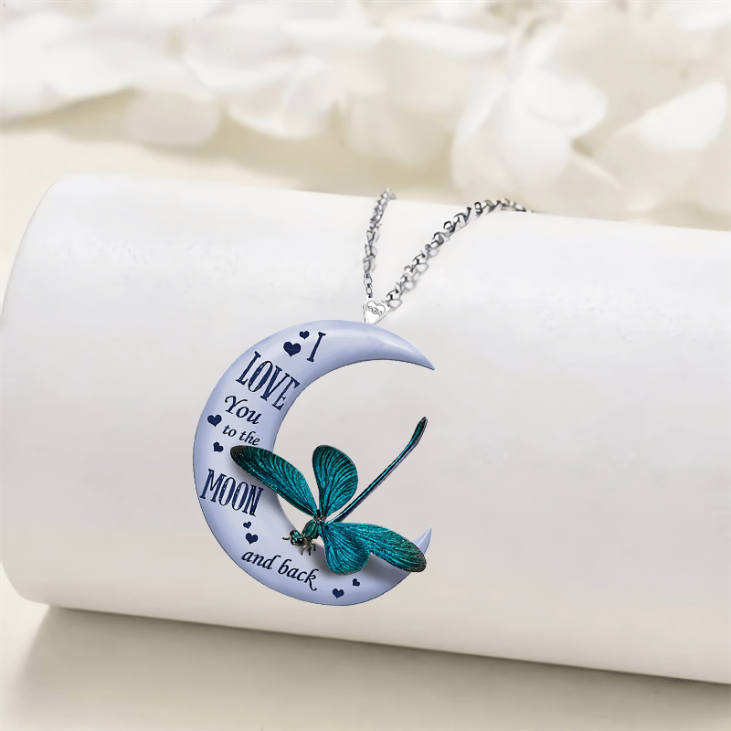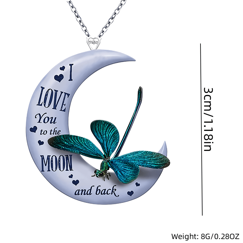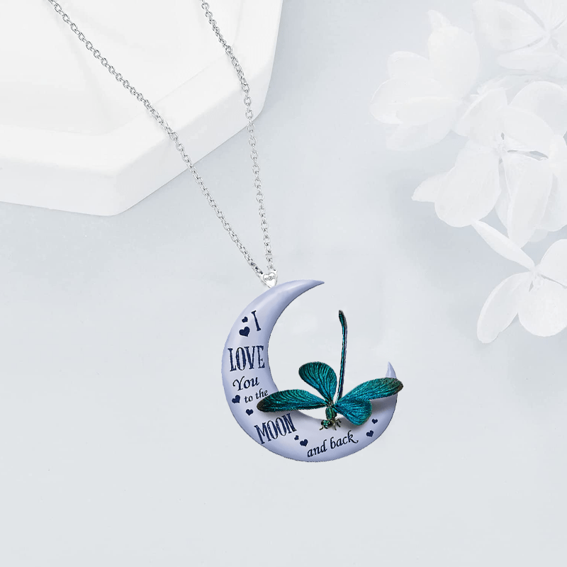 Add a touch of creativity to your look with this unique acrylic pendant necklace. Featuring a moon and dragonfly design, this accessory is perfect for holiday parties or as a gift. It also makes a great decorative accent.