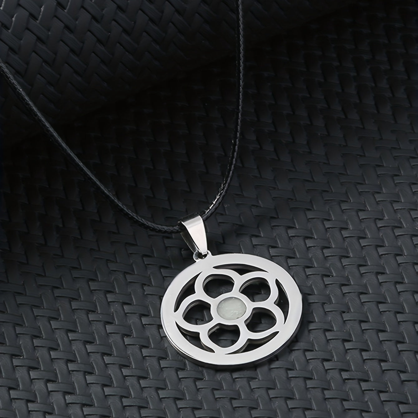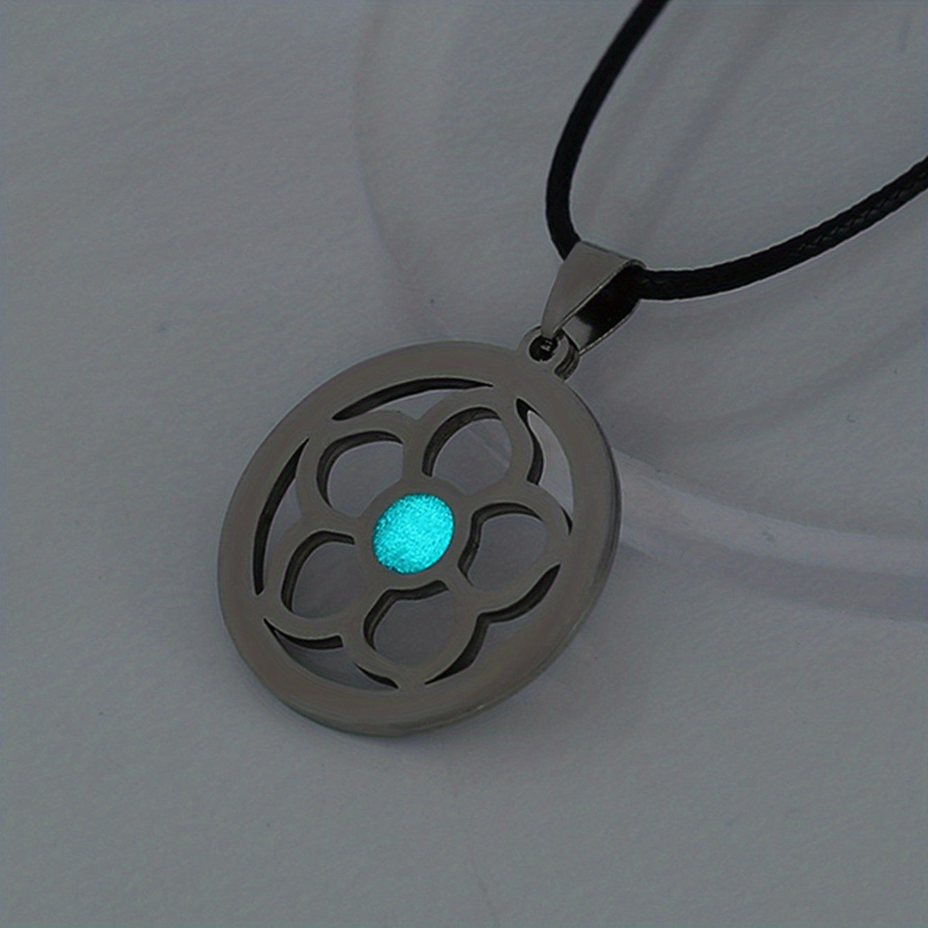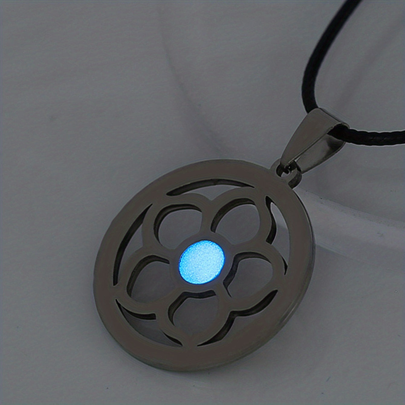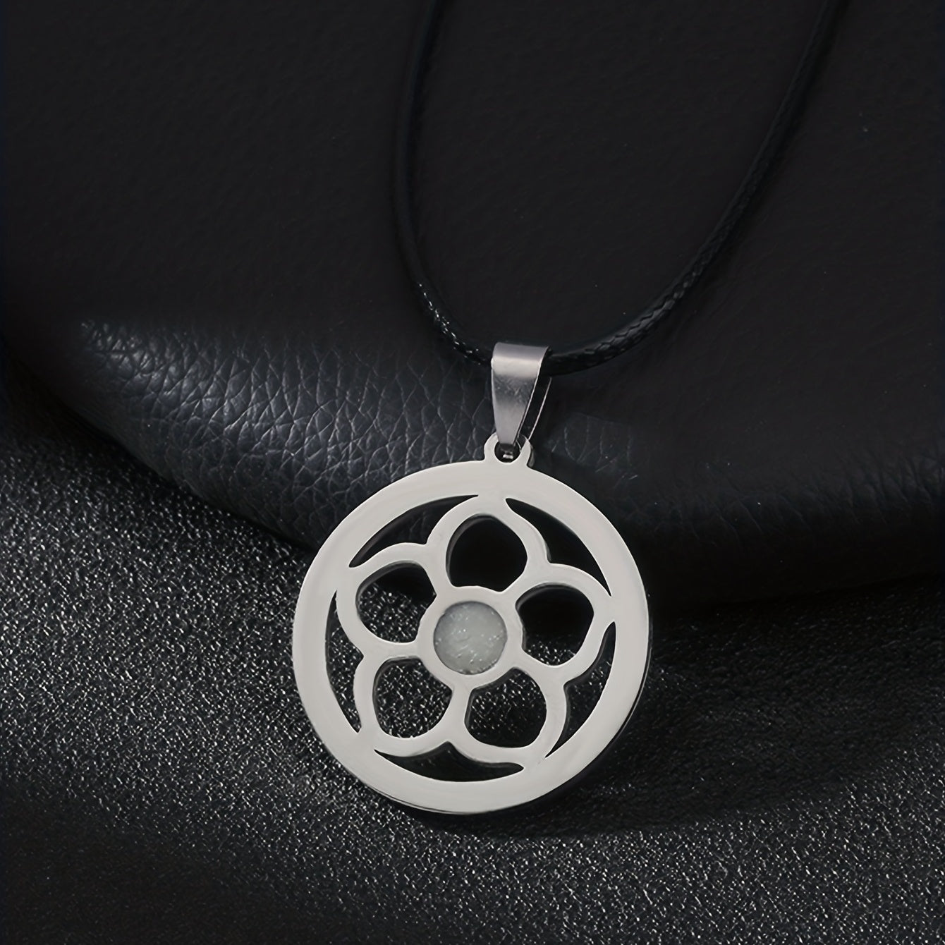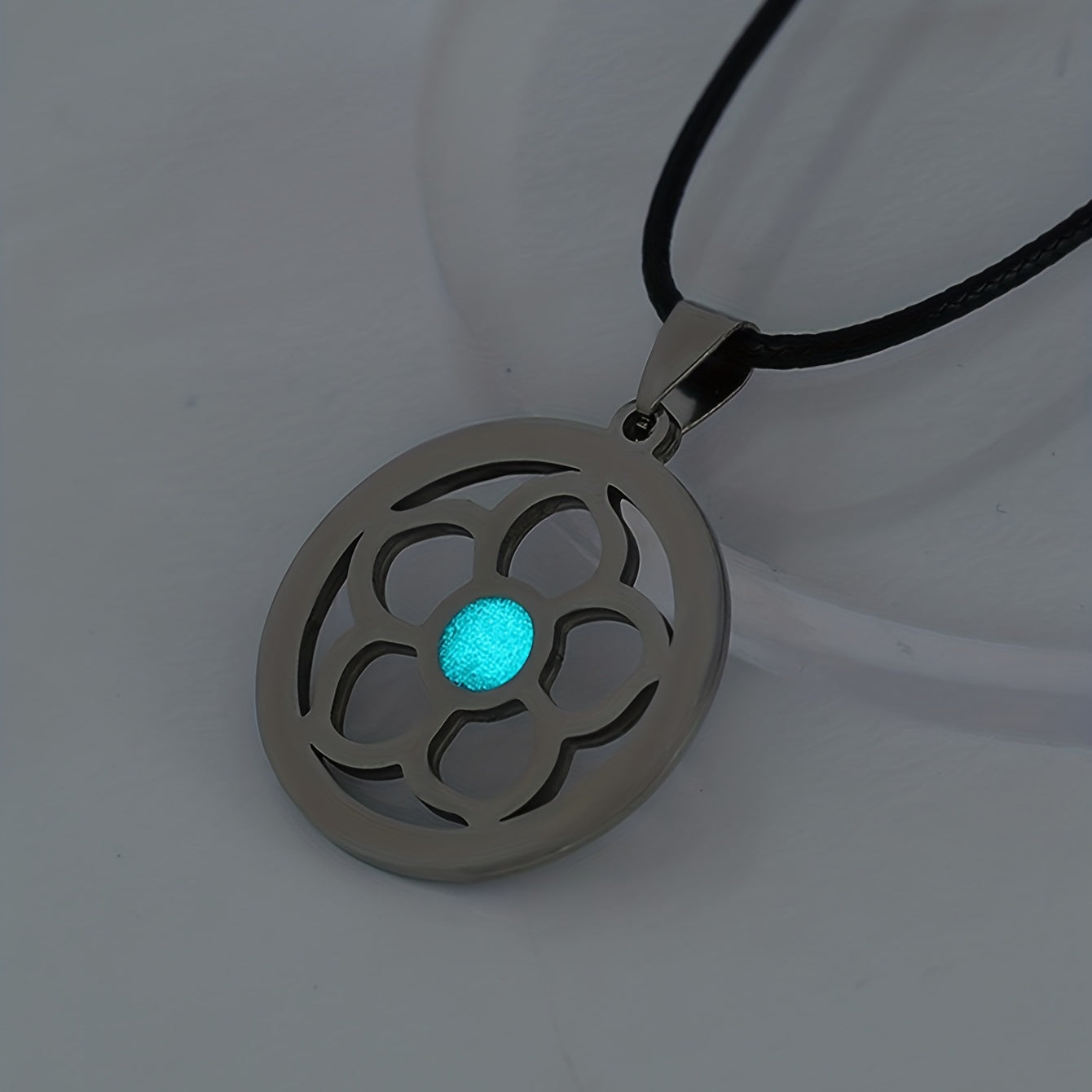 This stylish men's necklace features a round plum blossom hollow stainless steel pendant that glows in the dark. Perfect for street casual or daily wear, it makes a great gift for men.