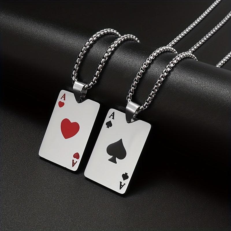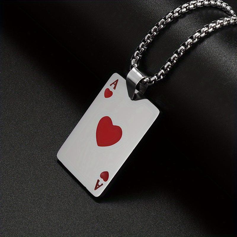 This stylish men's necklace features a playing cards pendant on a durable stainless steel chain. Perfect for poker enthusiasts or anyone who loves a unique accessory.