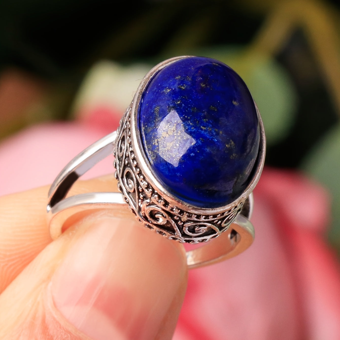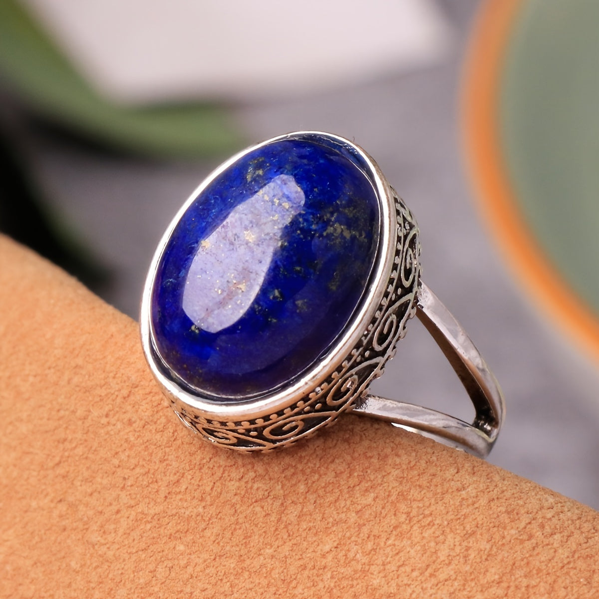 Stylish men's ring featuring an oval lapis lazuli stone, perfect for adding a touch of sophistication to your look.