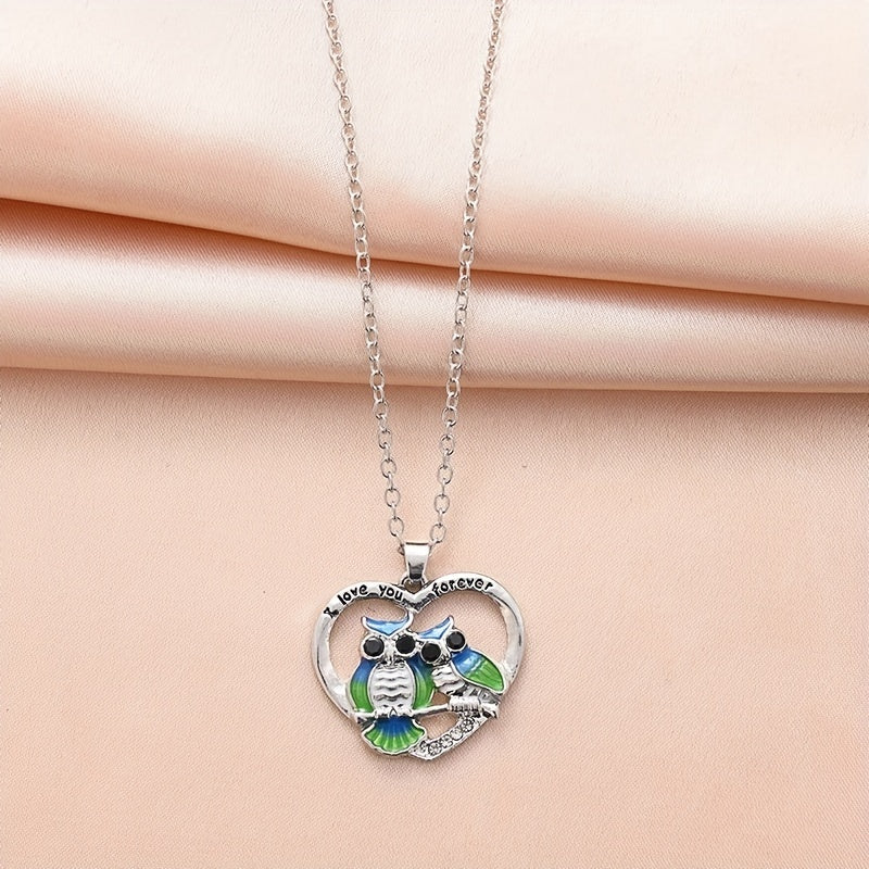 This creative owl couple necklace features a heart pendant, making it the perfect accessory for men. Ideal for banquets, parties, anniversaries, birthdays, and more.