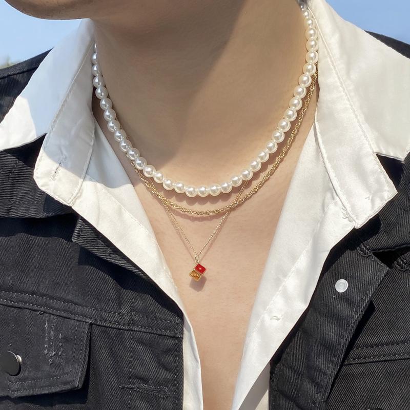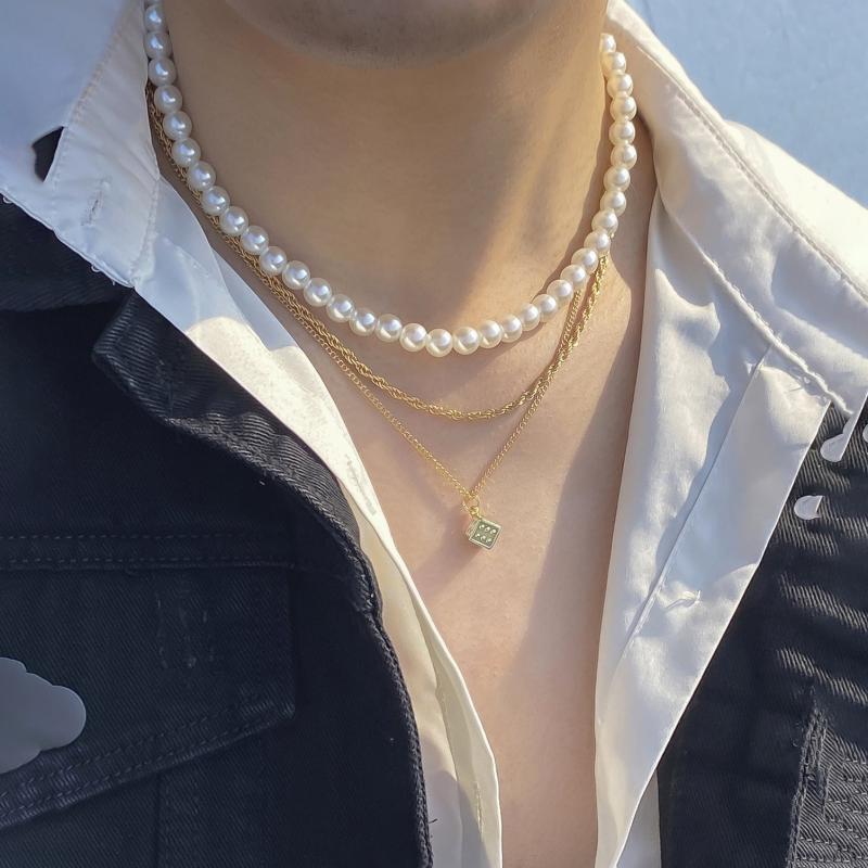 Add a touch of elegance to your outfit with this 3-piece men's pendant set featuring a classic pearl design. Perfect for business or casual occasions.