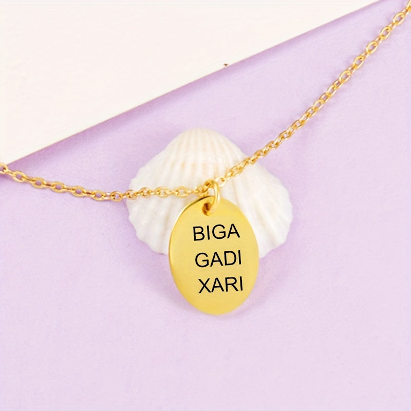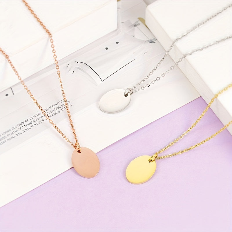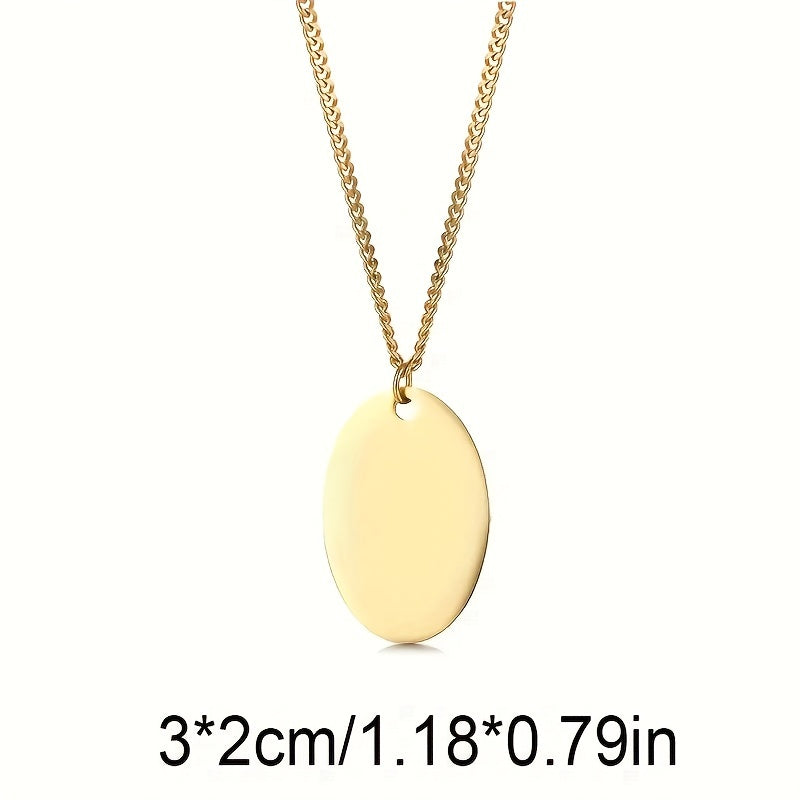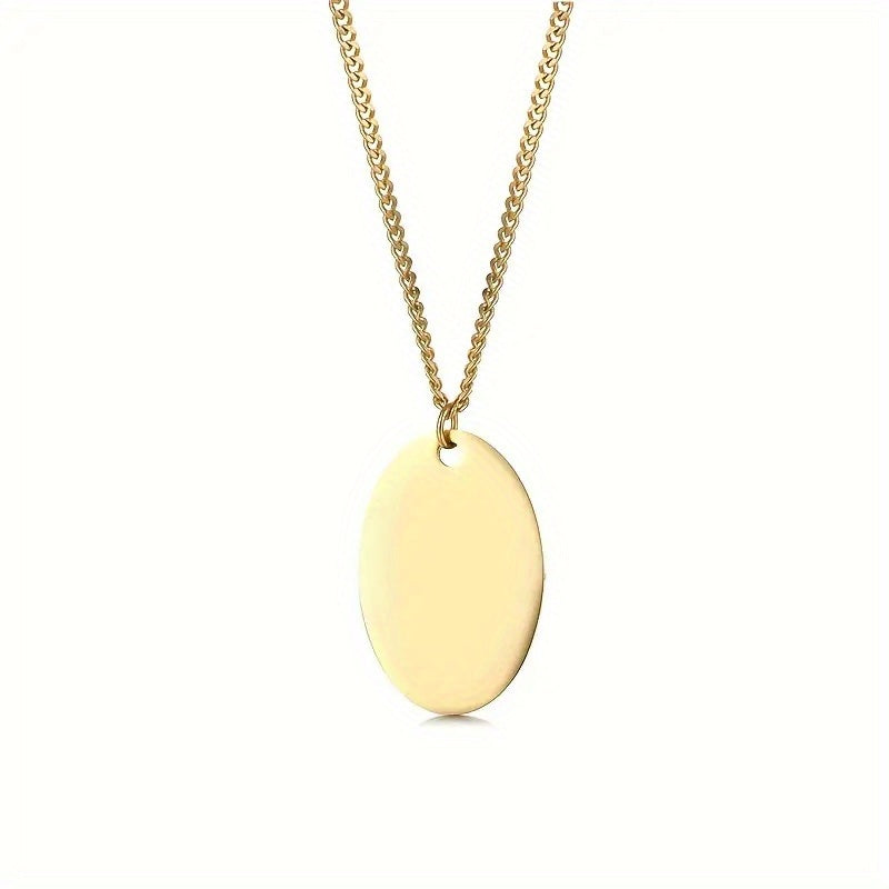 This custom necklace for men features a thick chain with a round chip pendant. Personalize it with your name and date for a unique touch.