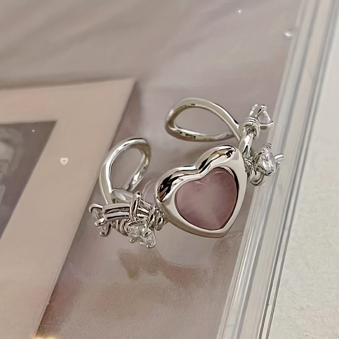 This unique ring features a pink heart thorns cat eye stone with zircon accents. It offers a sweet style and adjustable fit, perfect for women with a charming temperament.