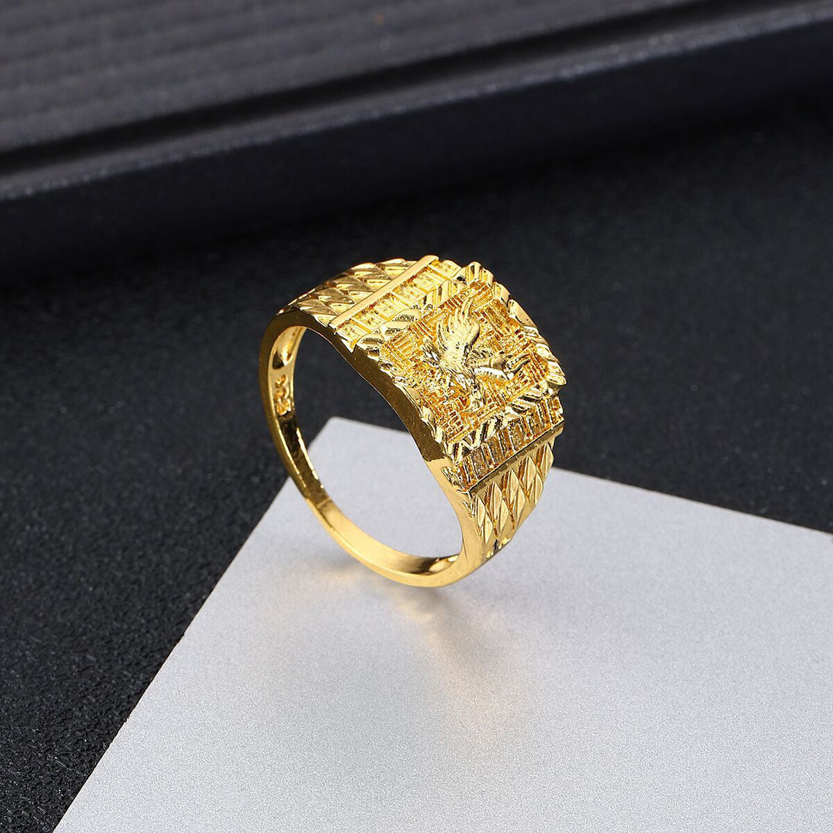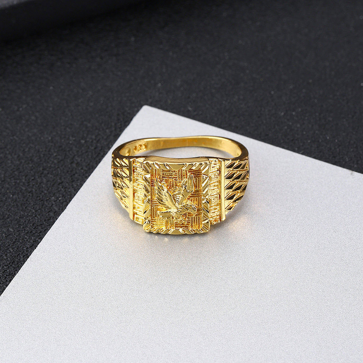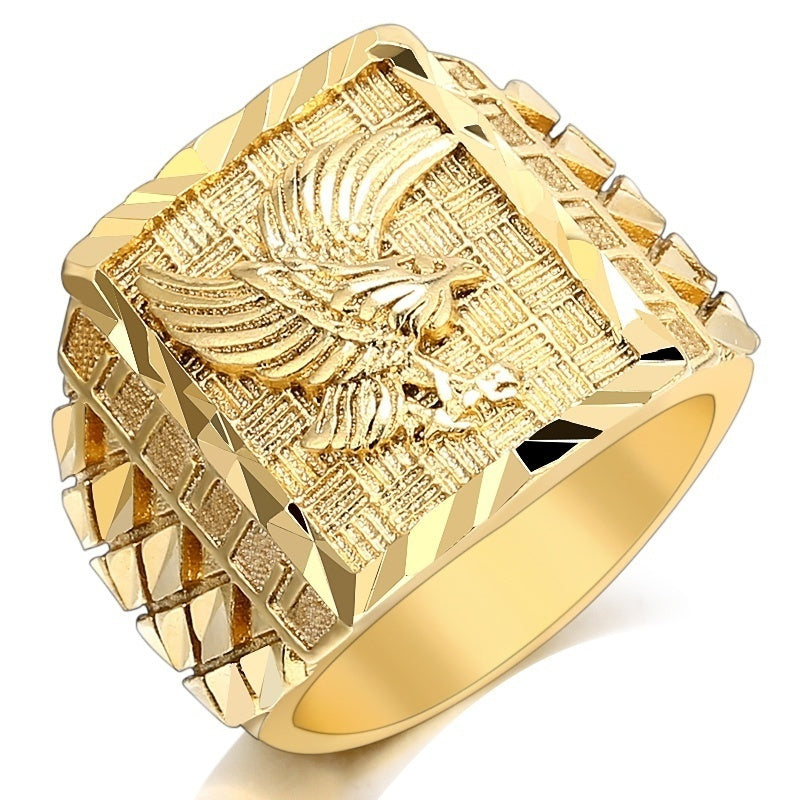 Show off your punk rock style with this cool plated eagle ring. Perfect for adding a touch of edge to your look.