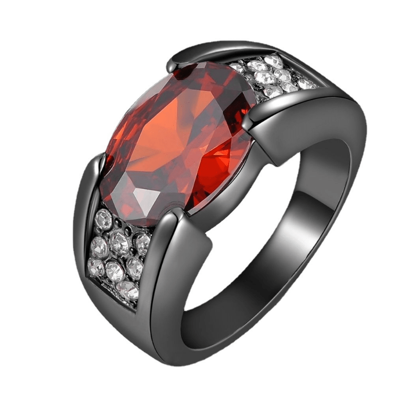 Add a touch of elegance to your look with this stunning men's ring featuring a plated design, artificial diamond, and a vibrant ruby stone.