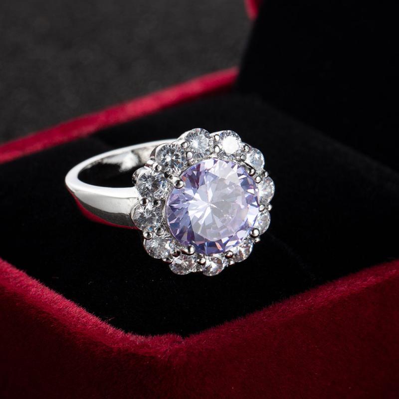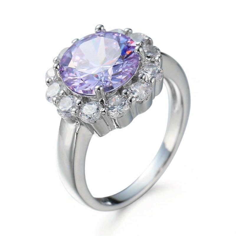 This floral ring features a blend of purple and clear crystals, making it an ideal accessory for weddings, parties, or everyday wear. A perfect gift for birthdays, anniversaries, or Father's Day.