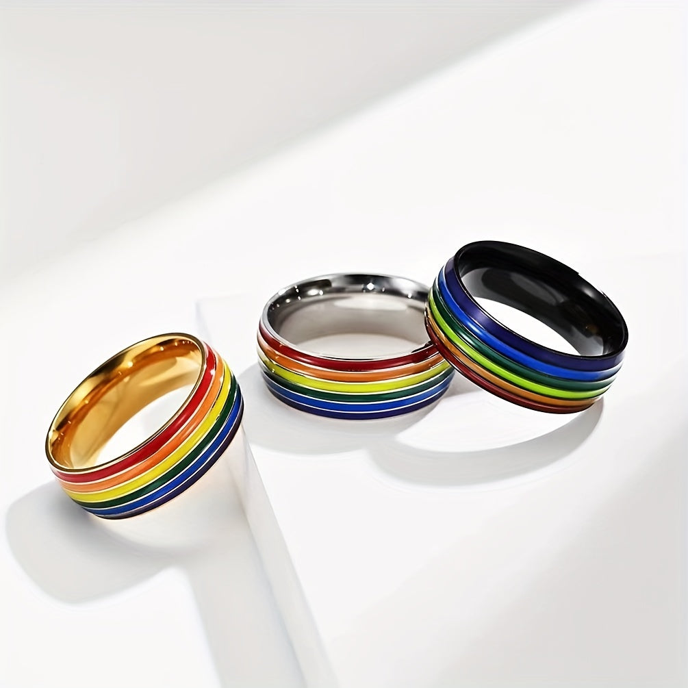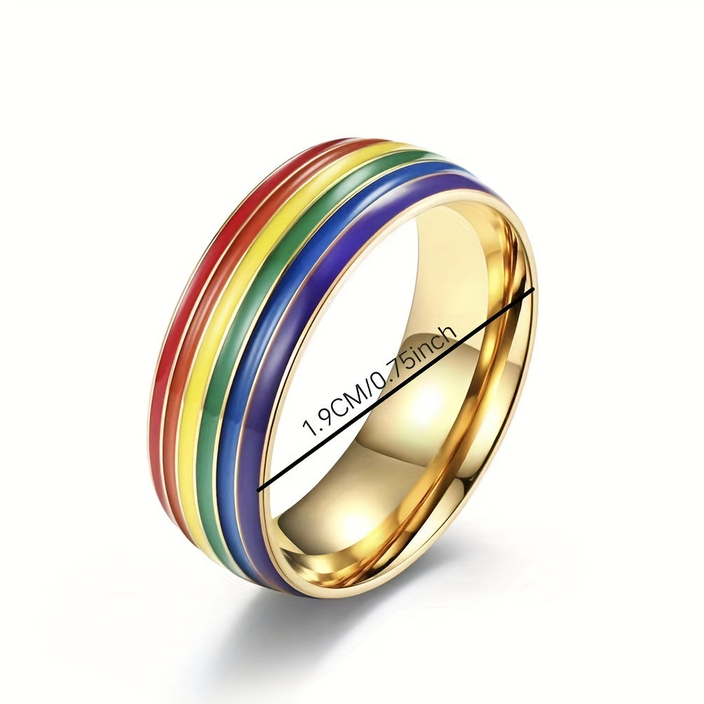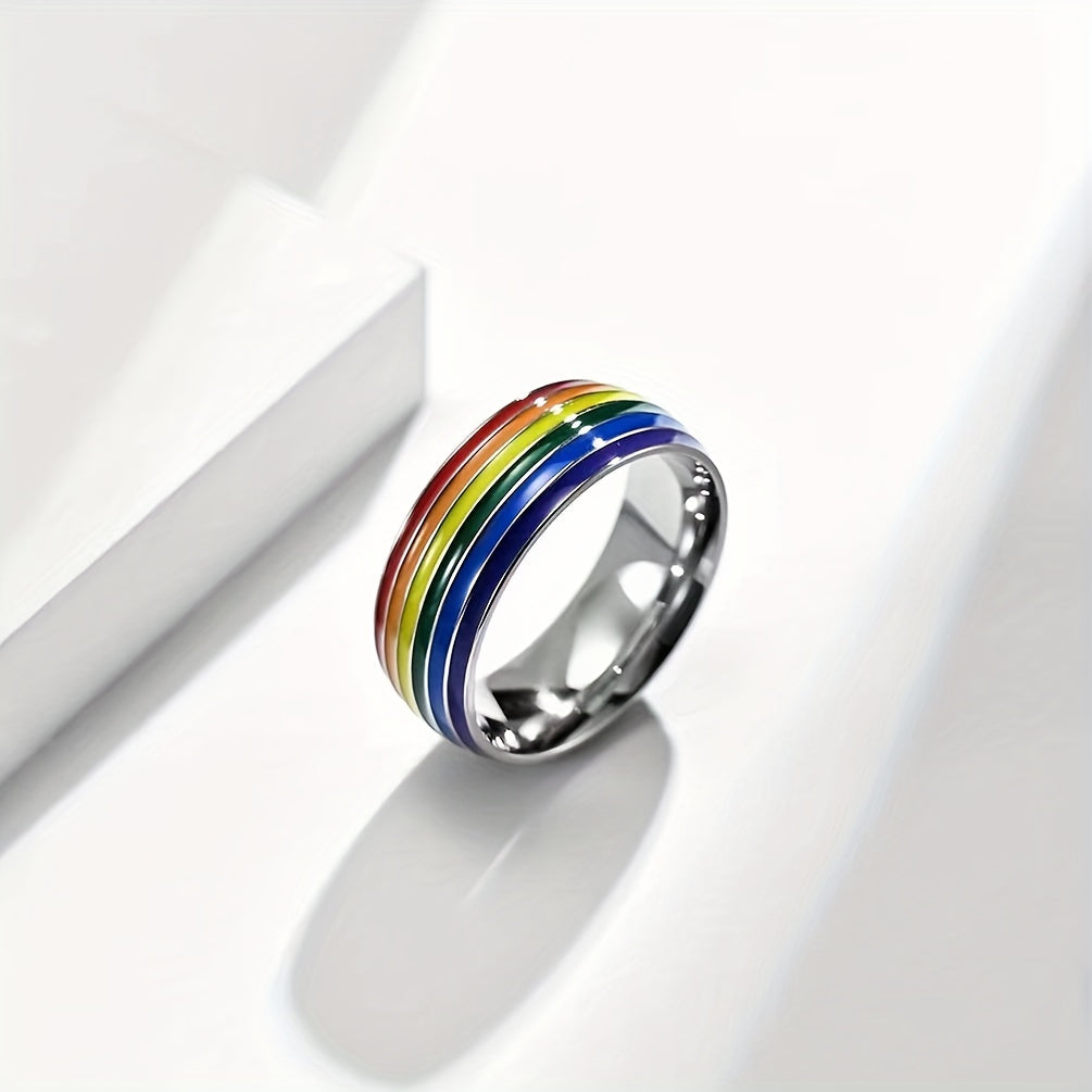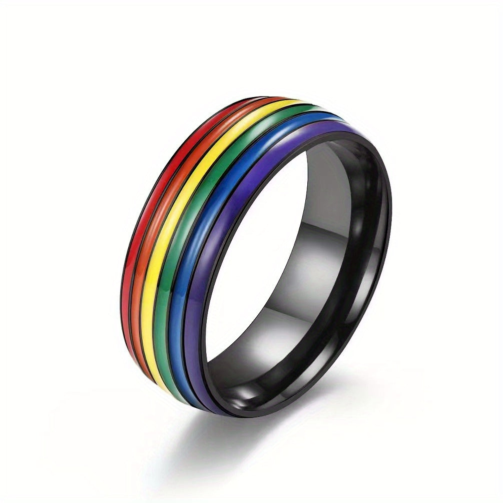 This stylish men's ring features a rainbow titanium steel design, perfect for adding a touch of color to your outfit. Made from durable stainless steel, this ring is both fashionable and long-lasting.