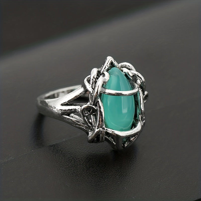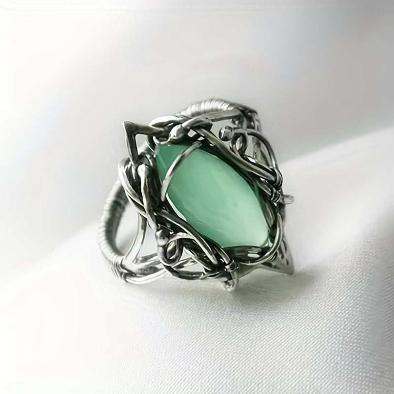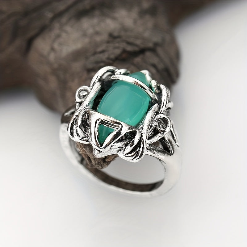 This stylish men's ring features a hollow design and a vibrant green zircon stone. Perfect for weddings, engagements, or parties.