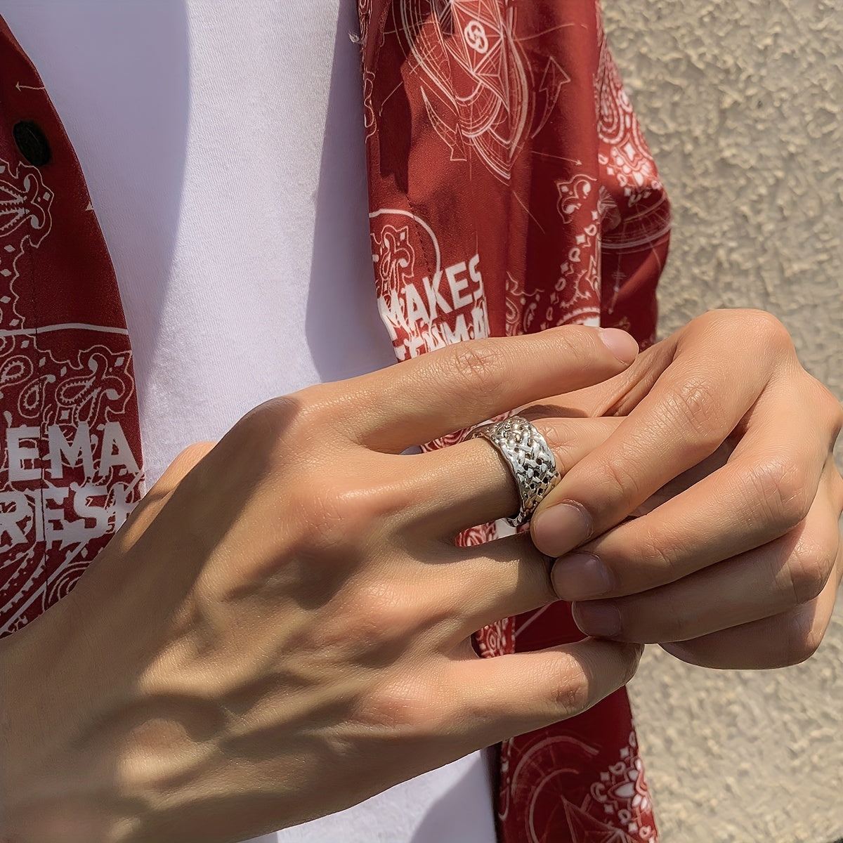 This men's ring features a retro design with a hollow out pattern, adding a stylish touch to any outfit.