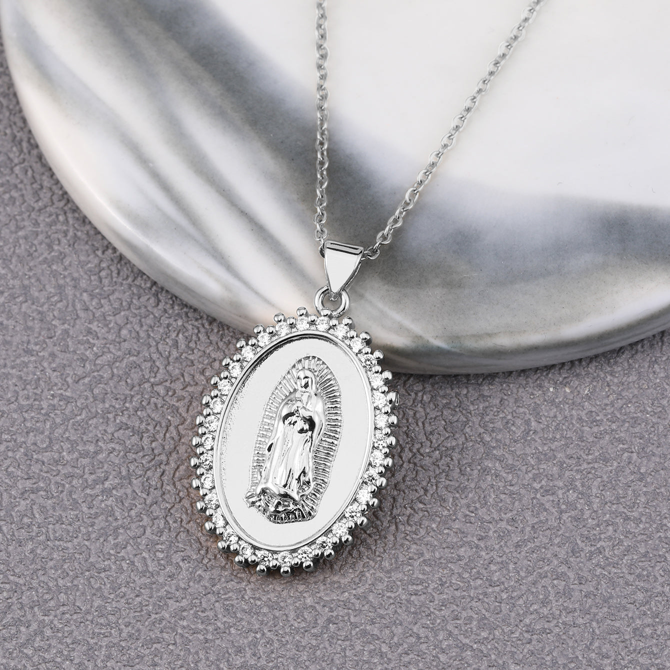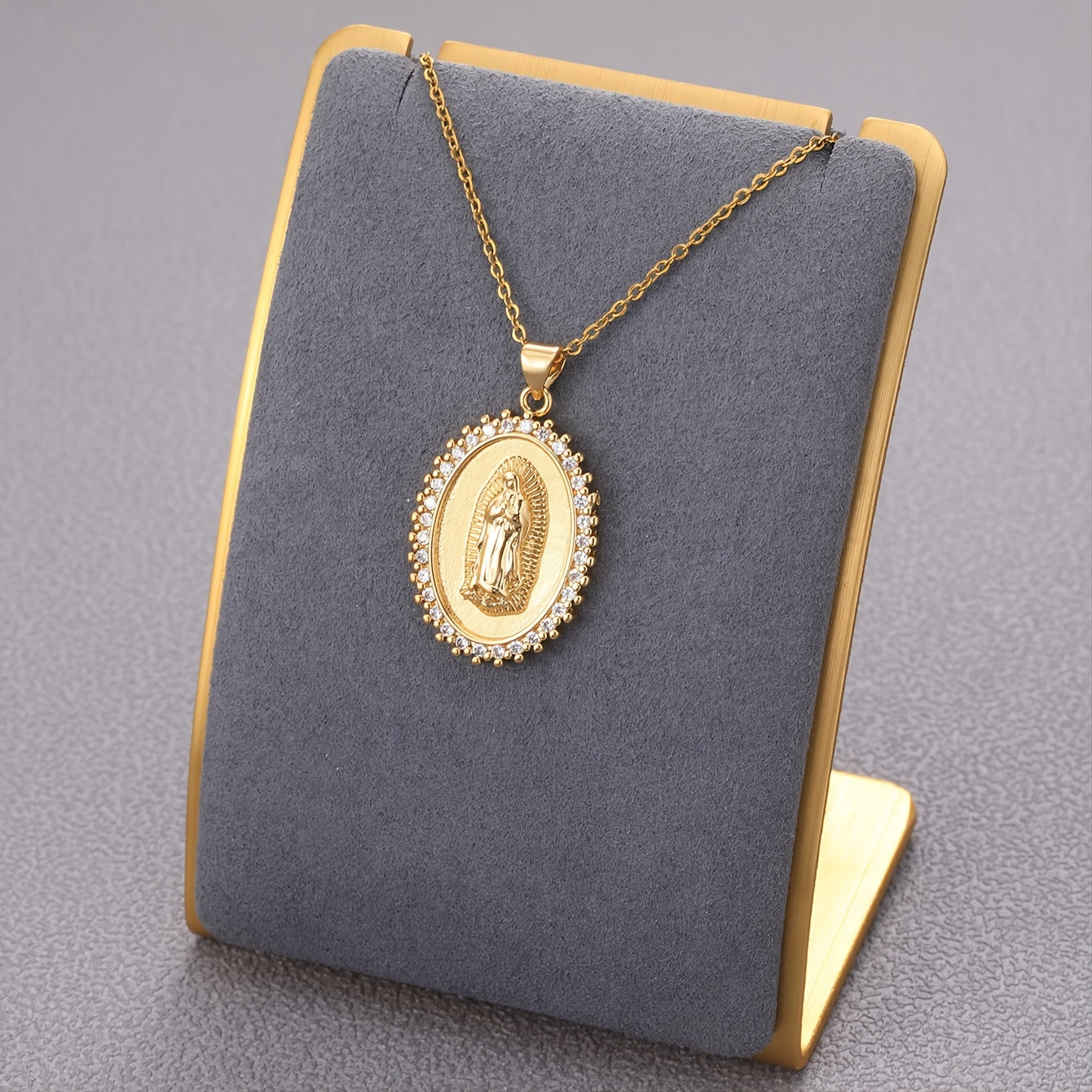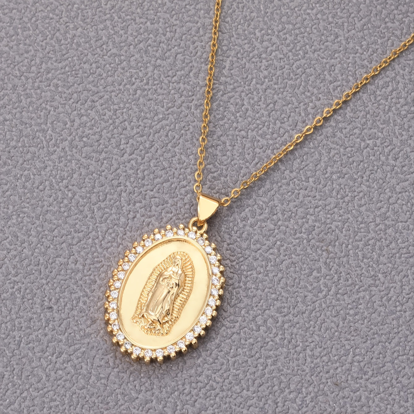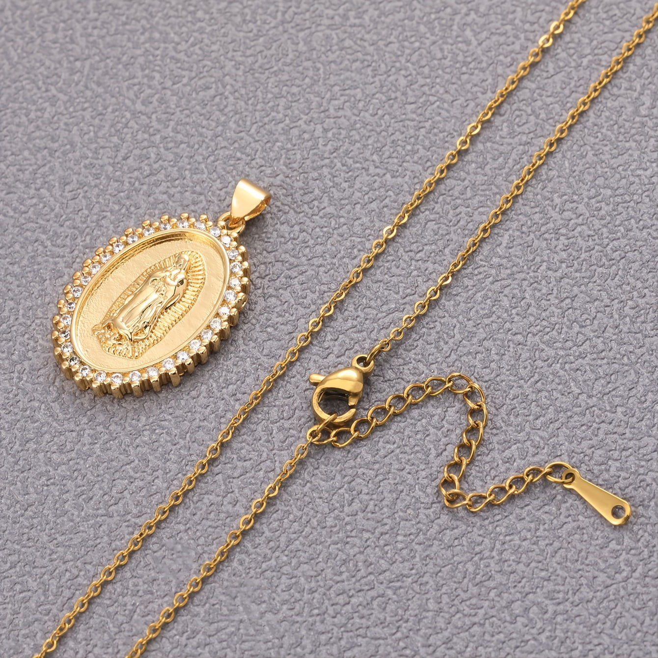 Upgrade your style with this retro stainless steel pendant necklace featuring an oval plate design adorned with zircon. Perfect for daily wear or special occasions.