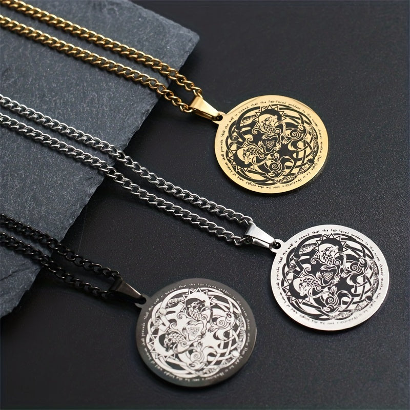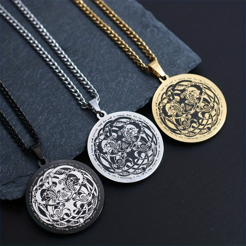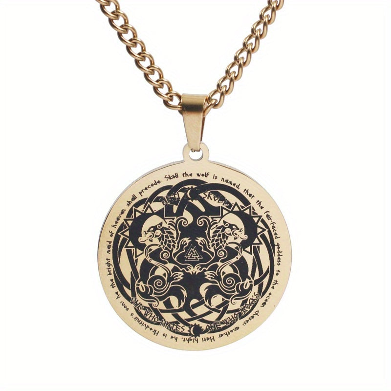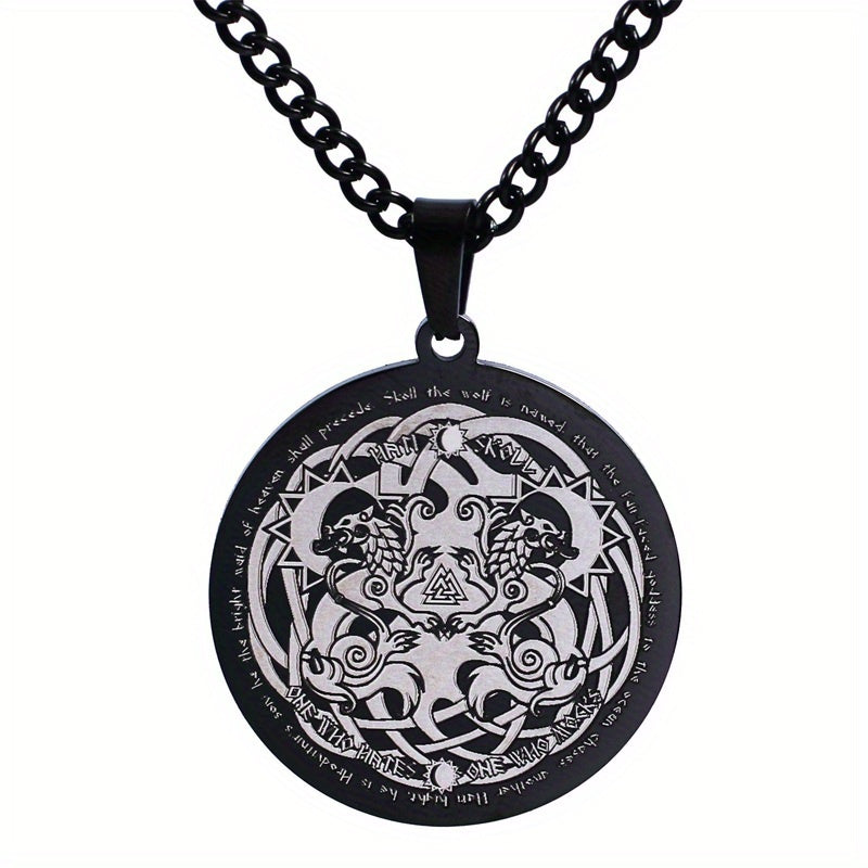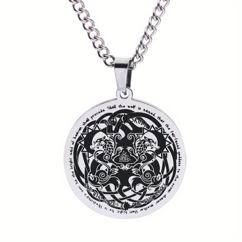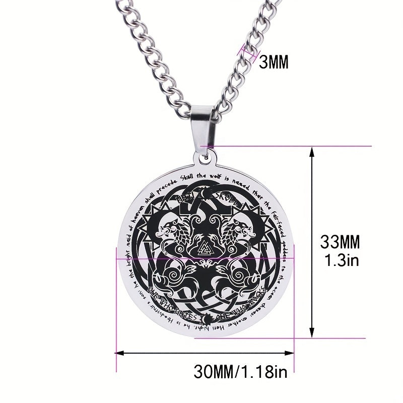 Enhance your style with this stainless steel pendant necklace featuring a Viking Celtic Wolf design. It adds a touch of mystique and sophistication to your outfit.