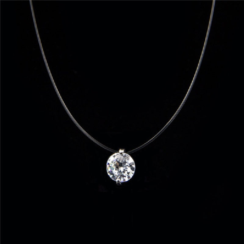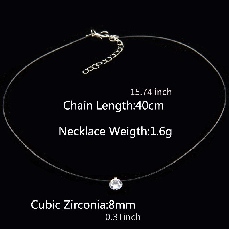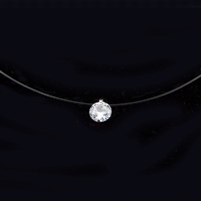 This choker necklace features transparent fishing line with shimmering rhinestones for a stylish look.