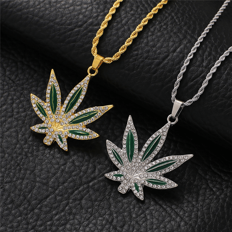 Men's Rhinestone Weed Leaf Pendant Necklace