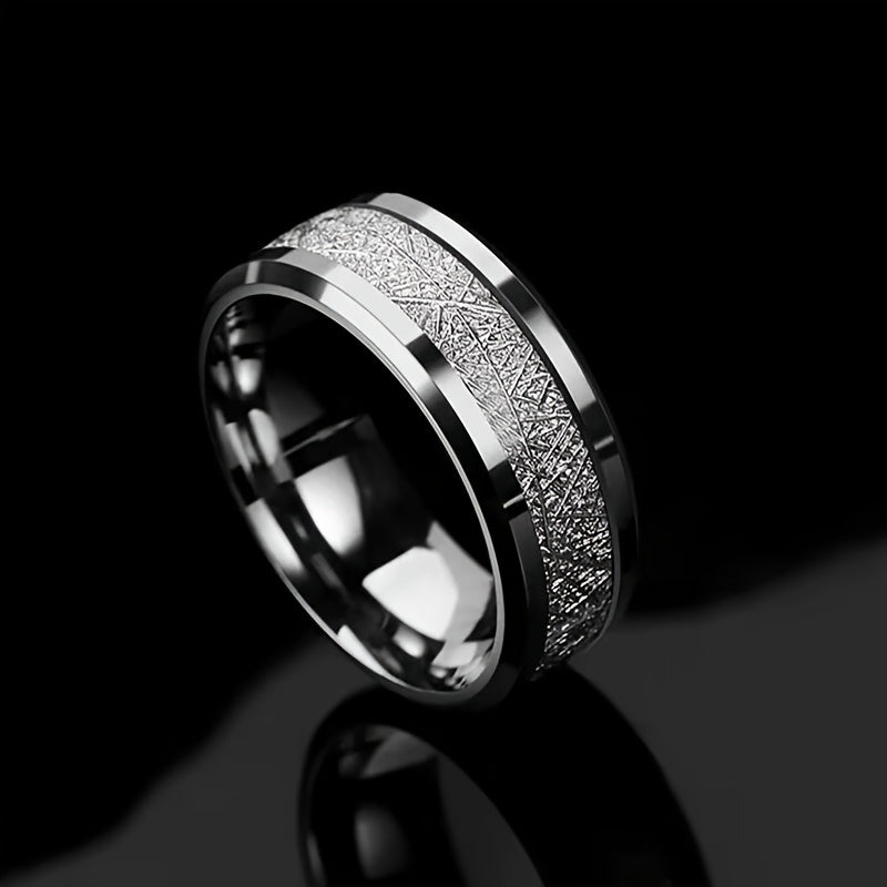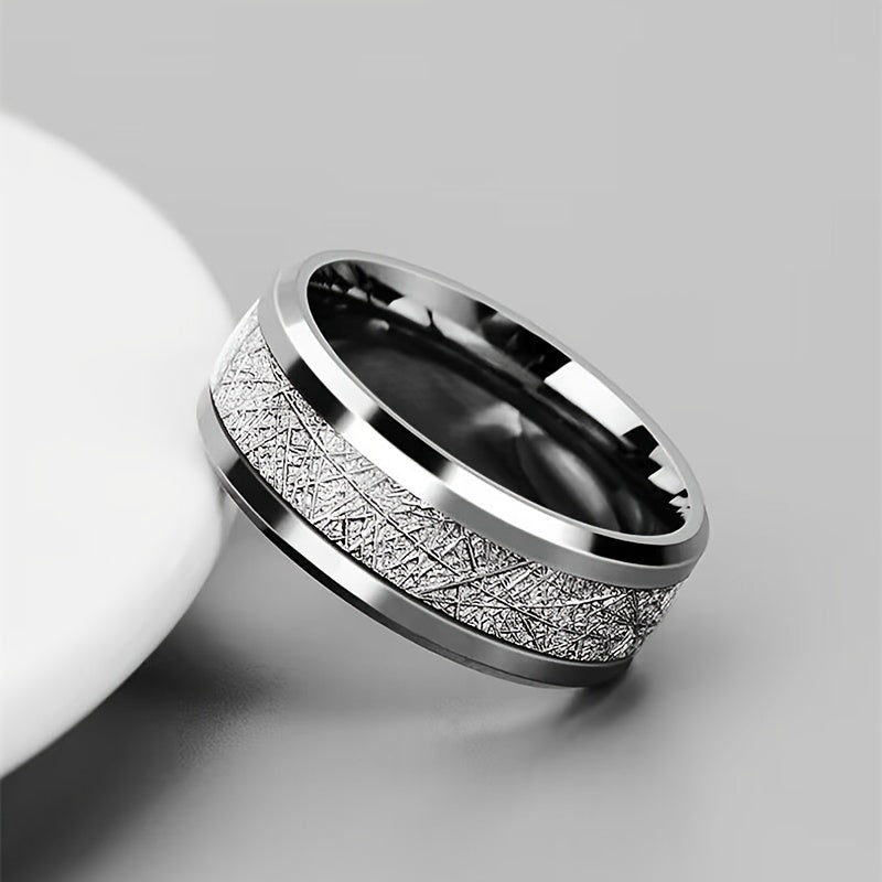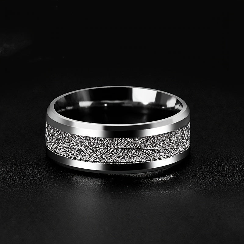 This titanium steel ring features a stylish rime pattern design with a glue drop accent, perfect for adding a touch of sophistication to your look.