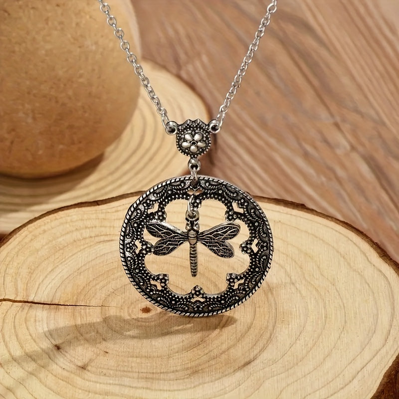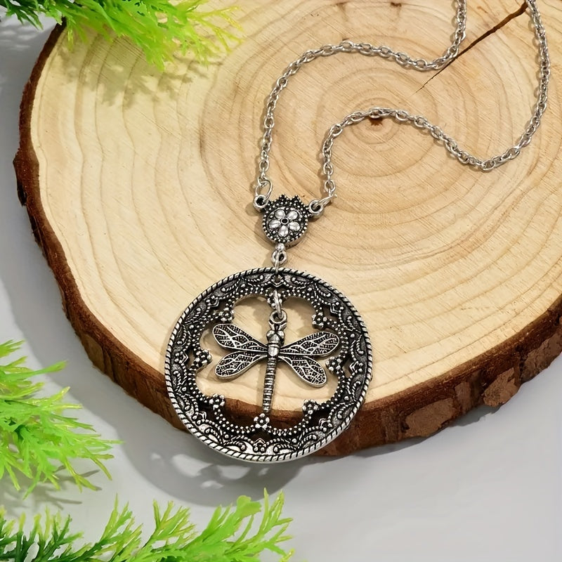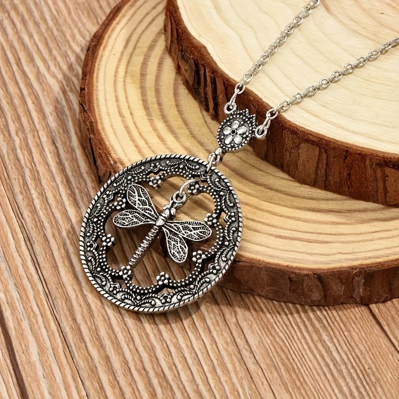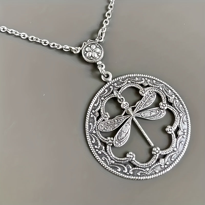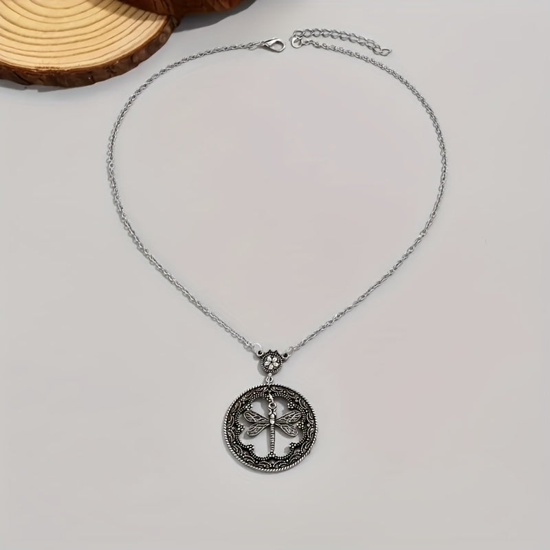 Add a touch of style to your outfit with this round pendant necklace featuring a dragonfly design. Perfect for street casual or daily wear, this men's jewelry piece is a versatile accessory.