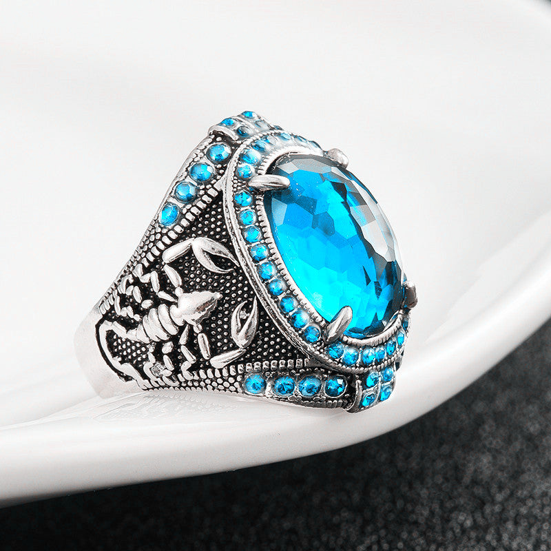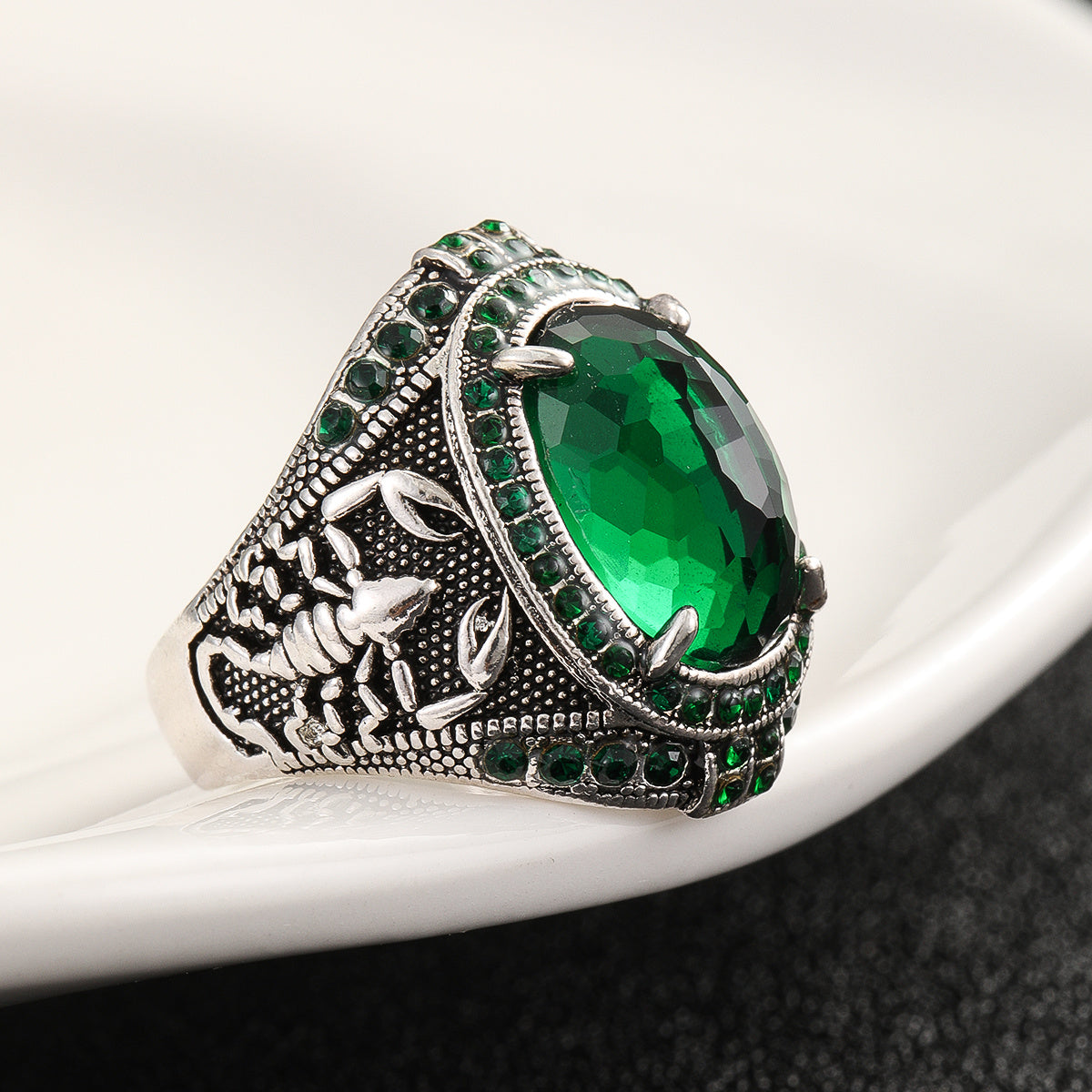 This men's ring features a scorpion shape with inlaid green zircon, making it a fashionable and classic accessory. It is crafted from high-quality alloy materials, perfect for adding a stylish touch to any outfit. Ideal as a gift for men.