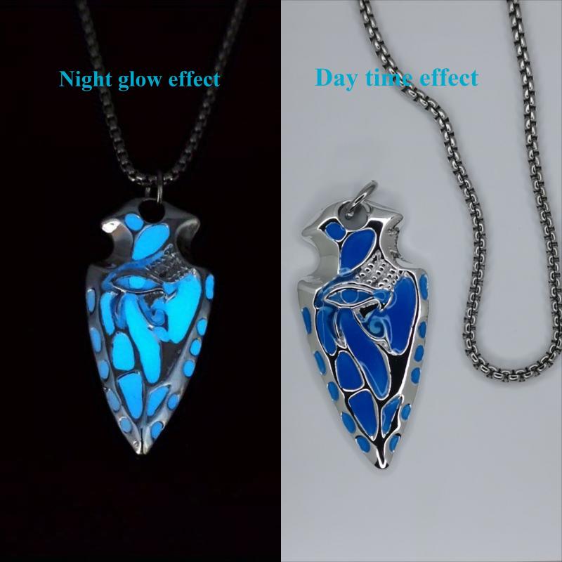 Enhance your Halloween look with this retro shield pendant featuring a glow effect. Made of durable alloy, this funky style jewelry is perfect for Halloween parties and celebrations.