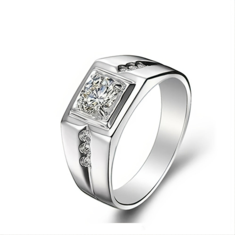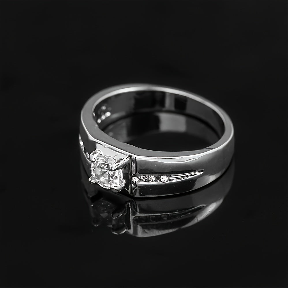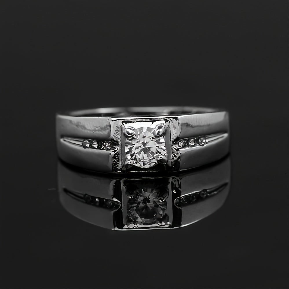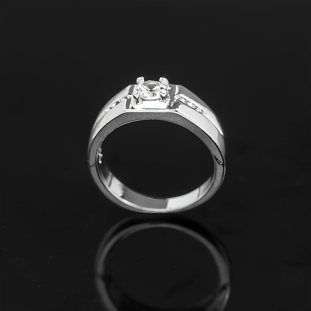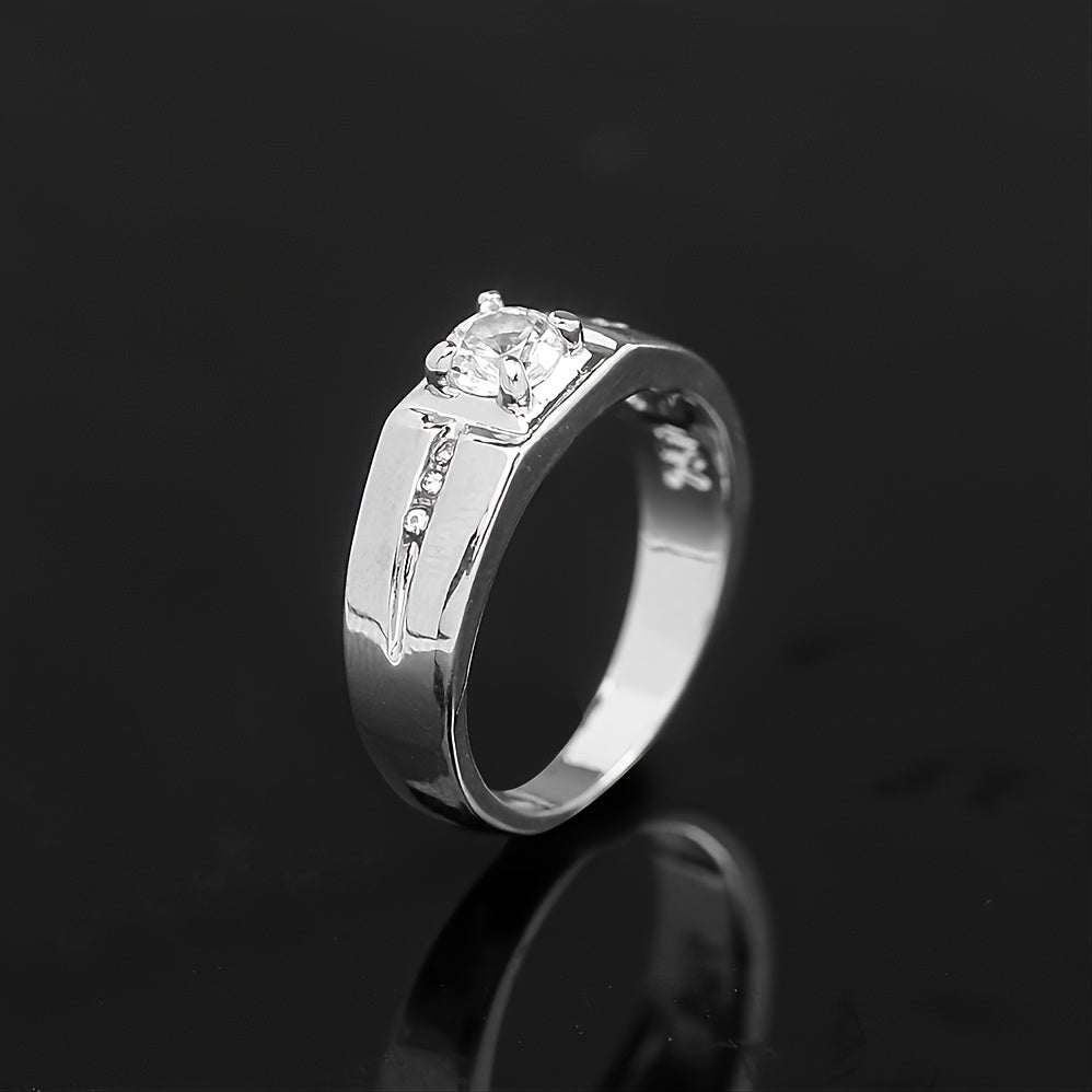 This stylish men's ring features a sparkling zirconia stone set in silver. Perfect for adding a touch of elegance to any outfit.
