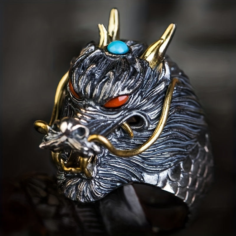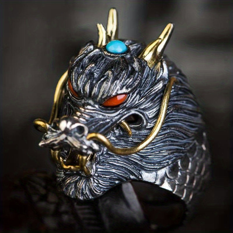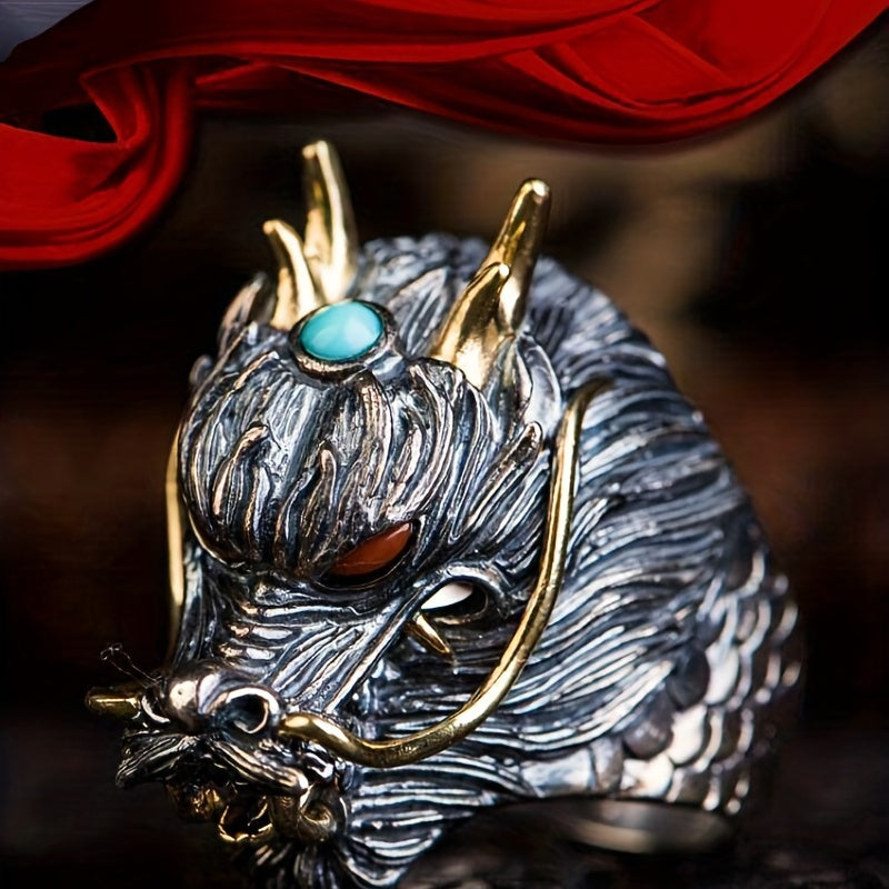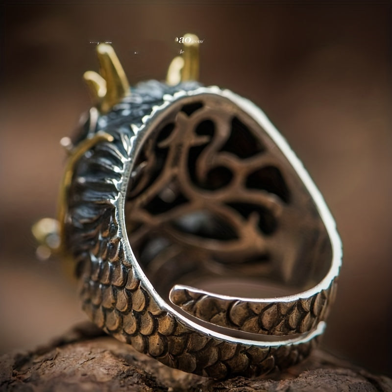 This domineering ring features a unique faucet design with a silvery dragon, perfect for couples with its adjustable size. Made of high-quality materials, this ring exudes a retro charm.