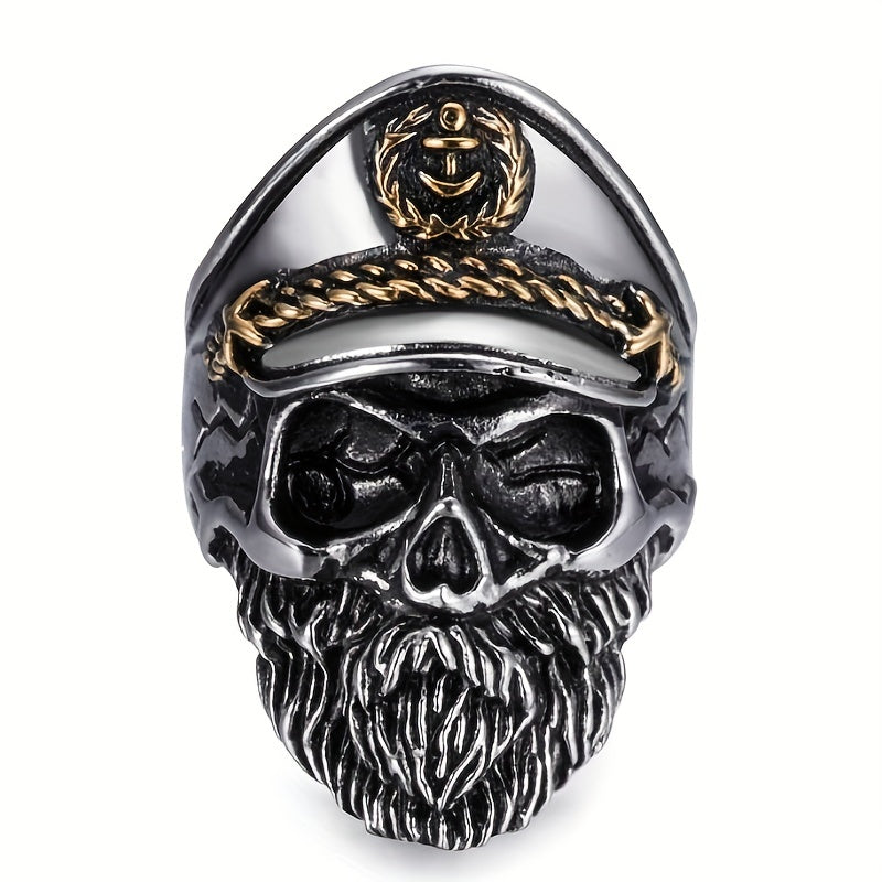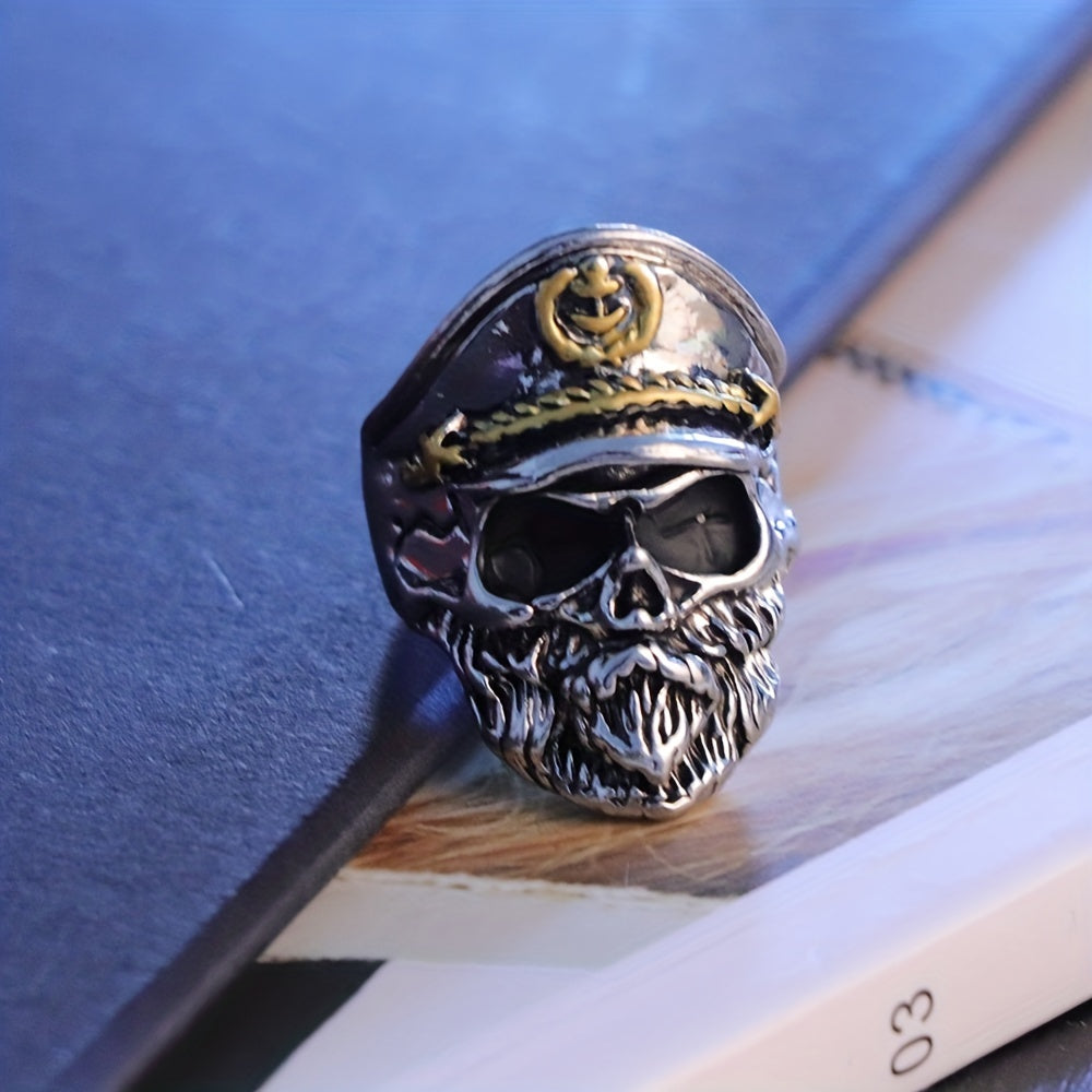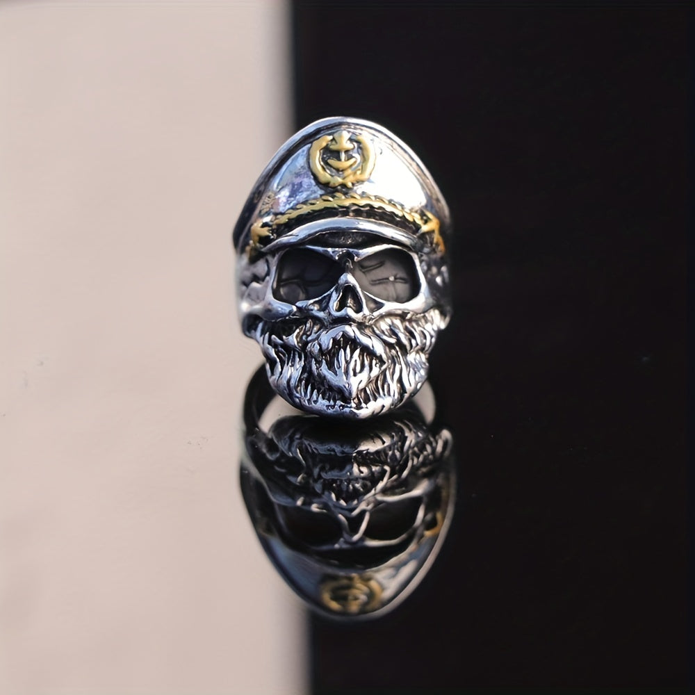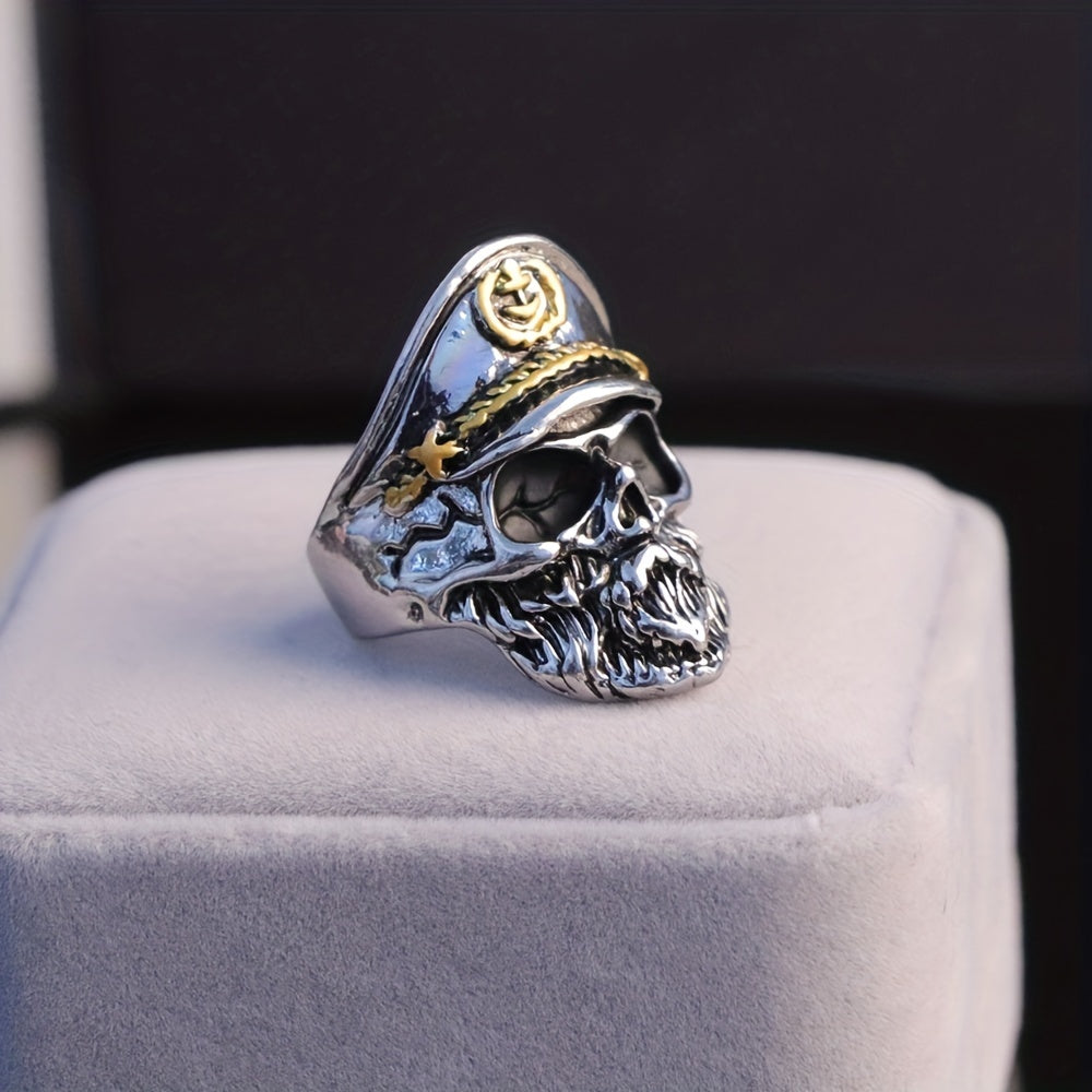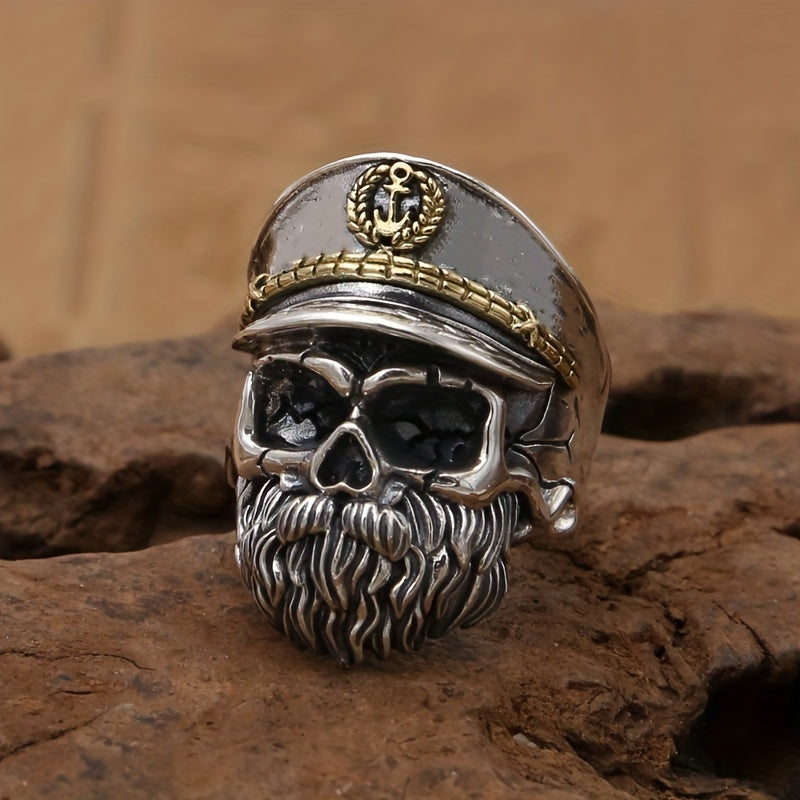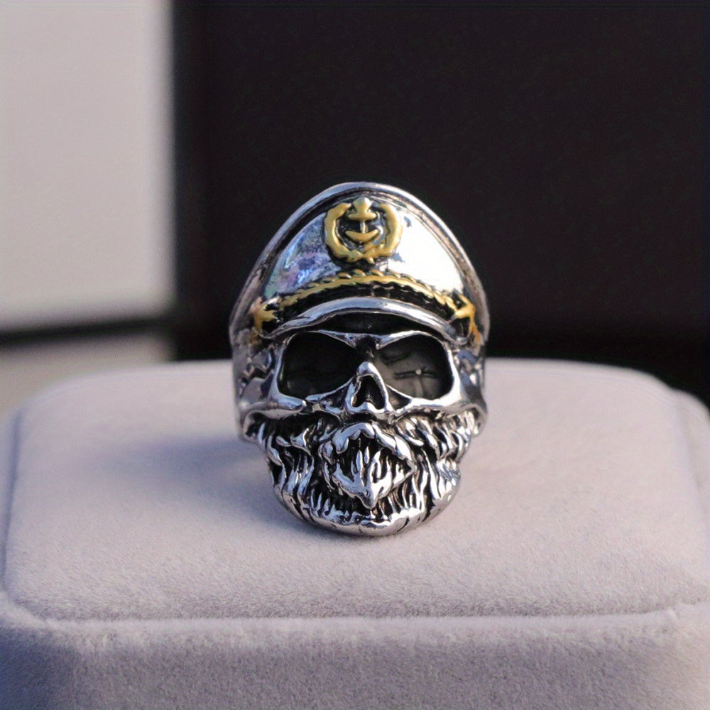 Add a rebellious touch to your look with this punk style men's skull ring. Crafted in silvery metal, this officer navy captain ring is perfect for parties and gatherings.