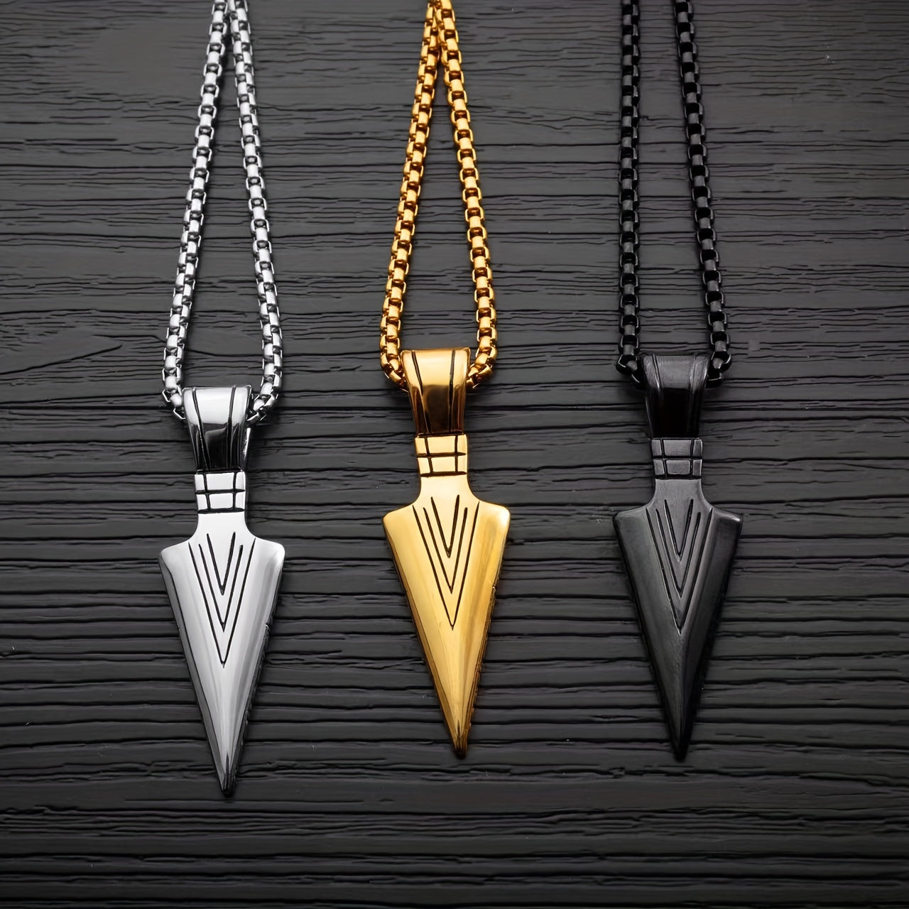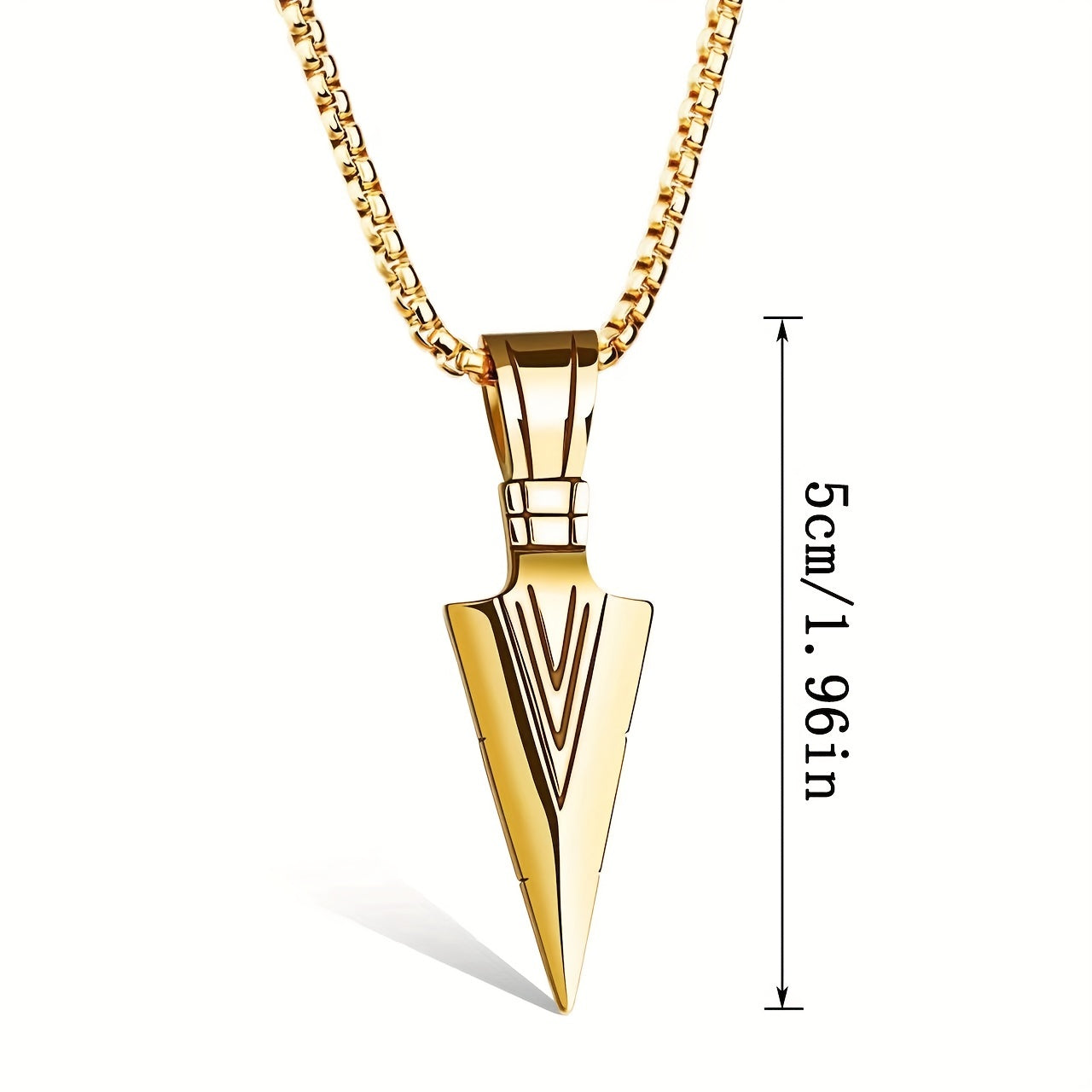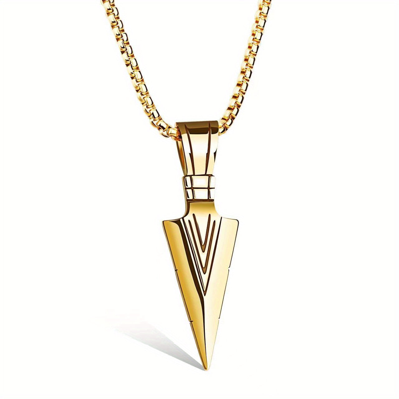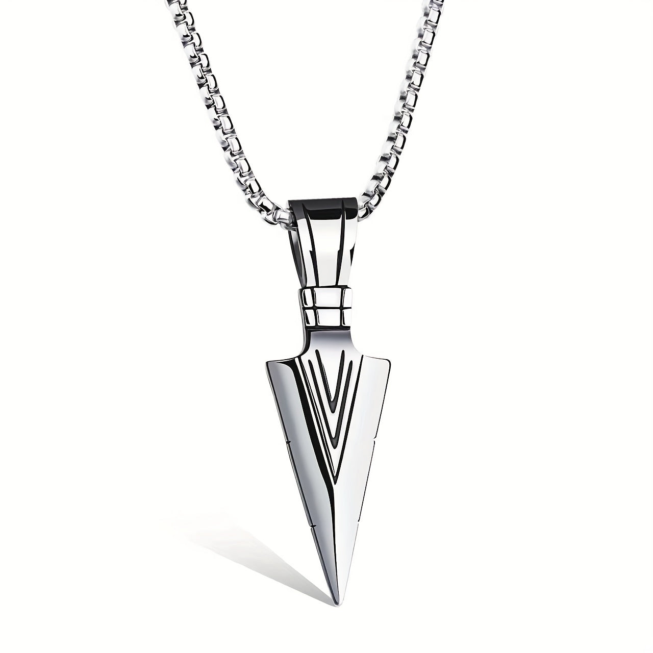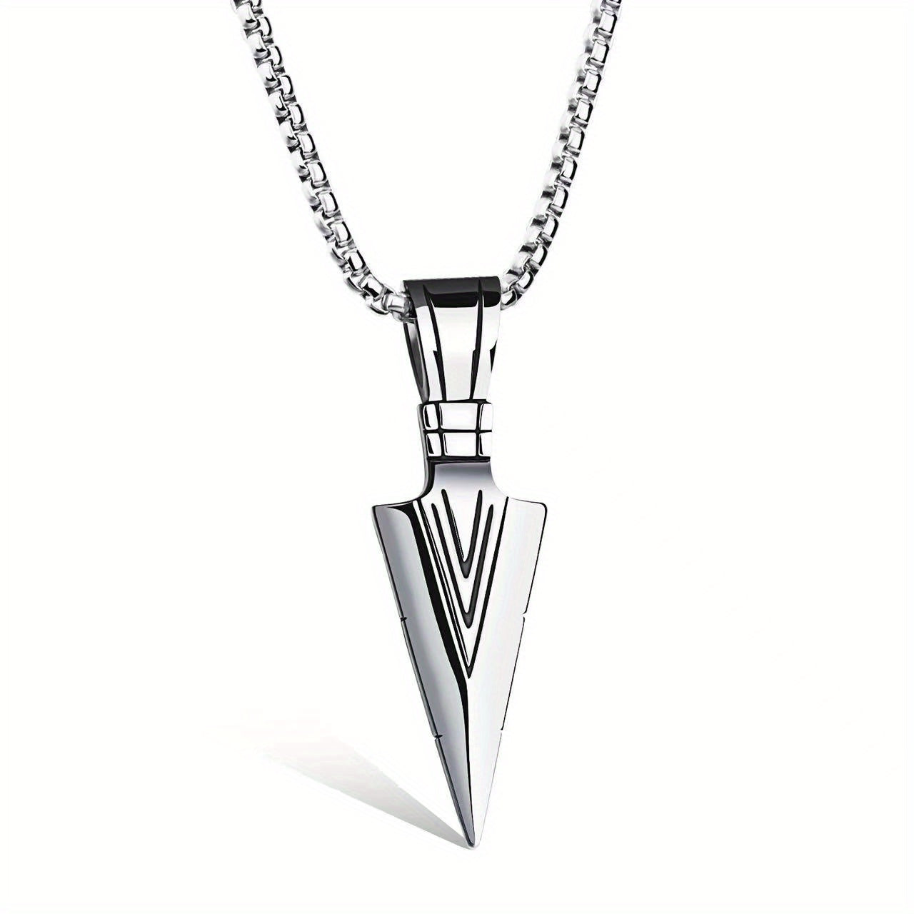 Add a bold touch to your look with this unique spearhead pendant necklace designed for men. Perfect for street style and hip hop fashion.