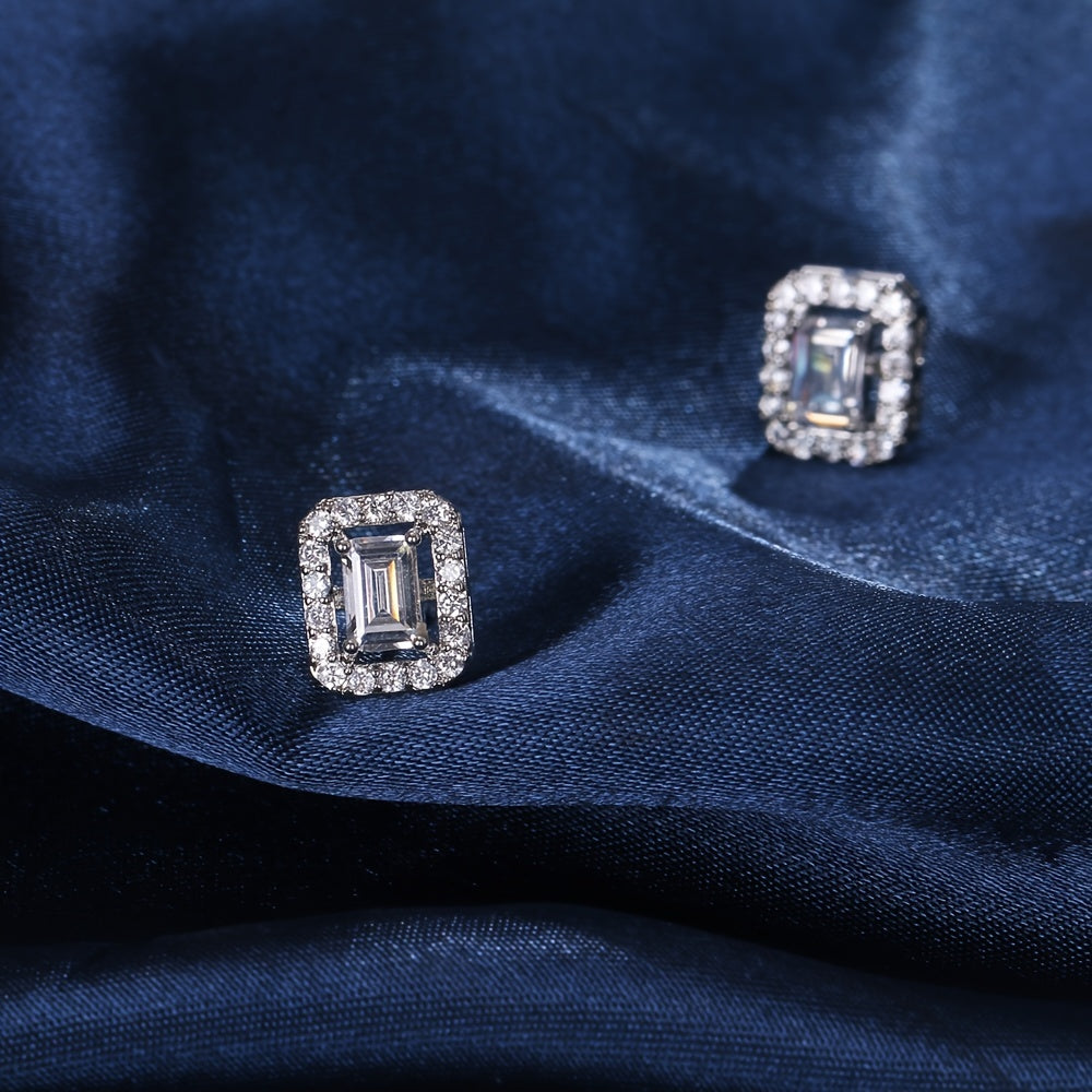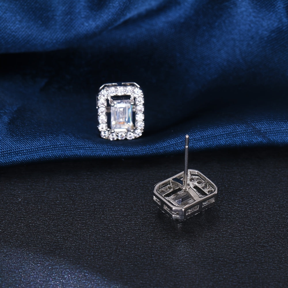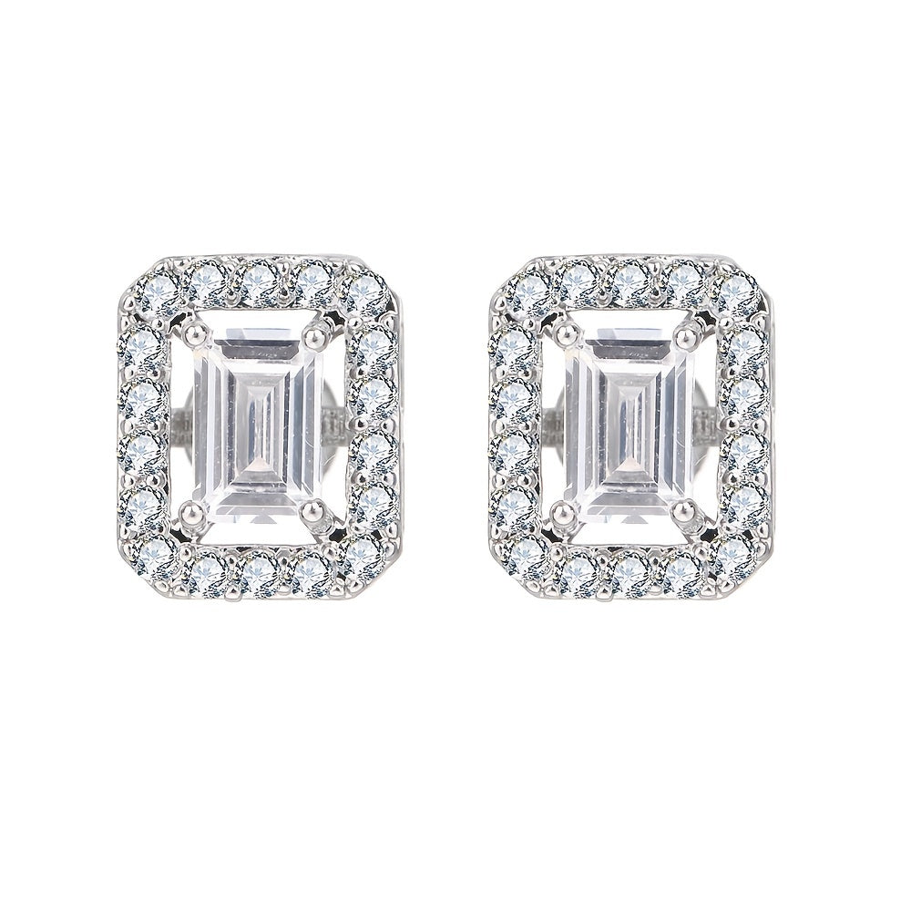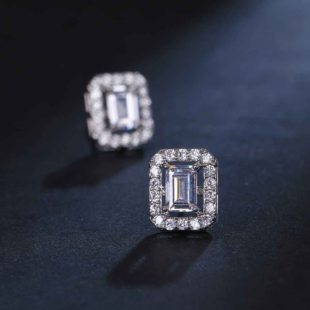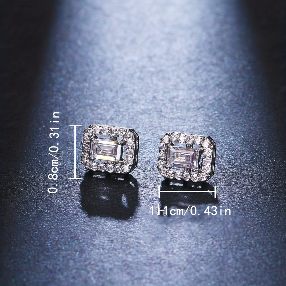 Add a touch of elegance with these stud earrings featuring a classic square design and zircon stones. Perfect for couples to wear together.