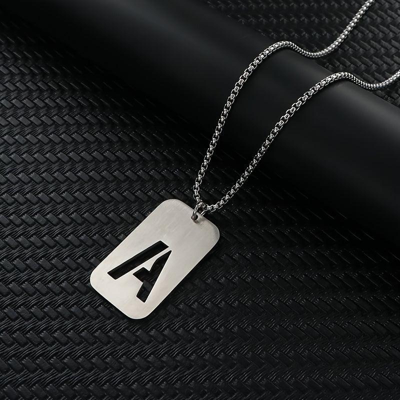 Make a bold statement with this minimalist 'A' pendant necklace. Crafted from durable stainless steel, this punk rock style piece is perfect for everyday wear. A great birthday gift for him.
