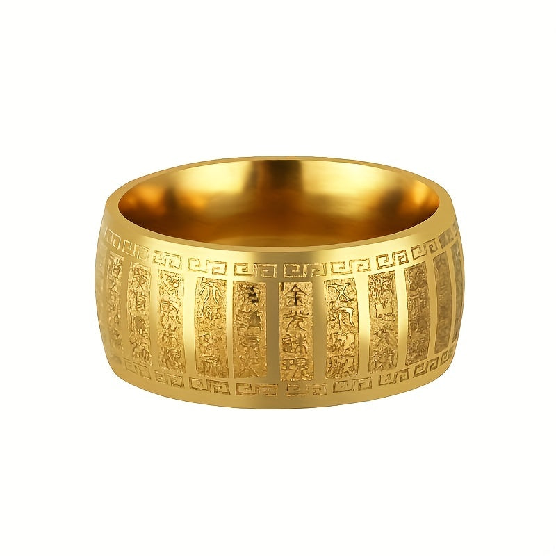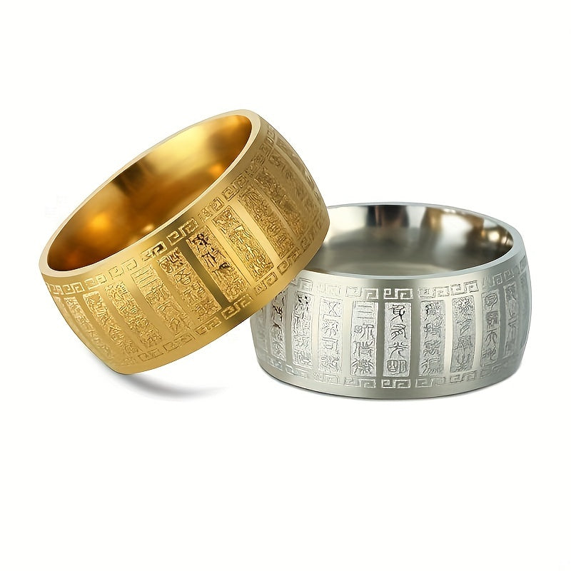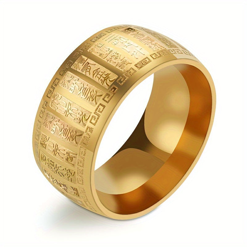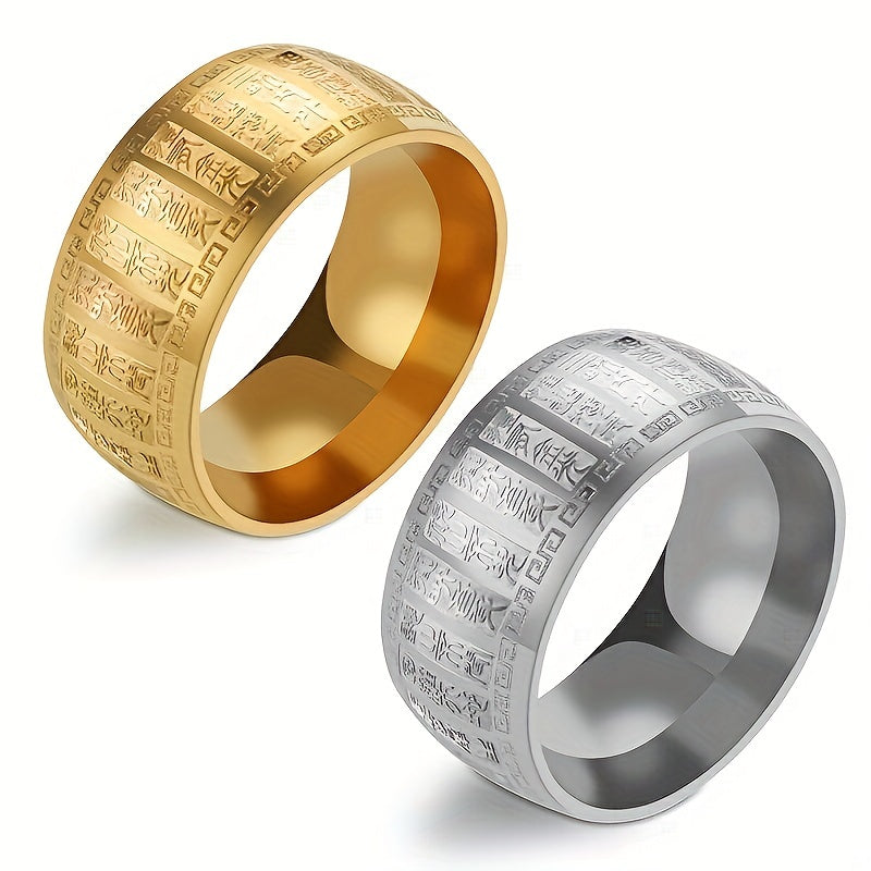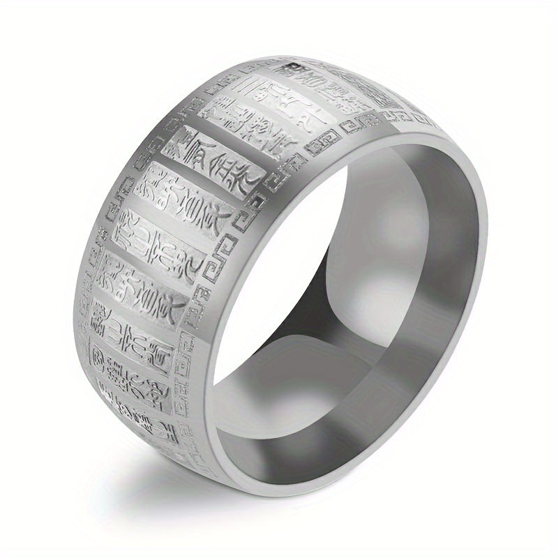 Embrace a rugged and timeless style with this men's stainless steel ring featuring ancient engraved amulet design. Perfect for bikers and adventurers.
