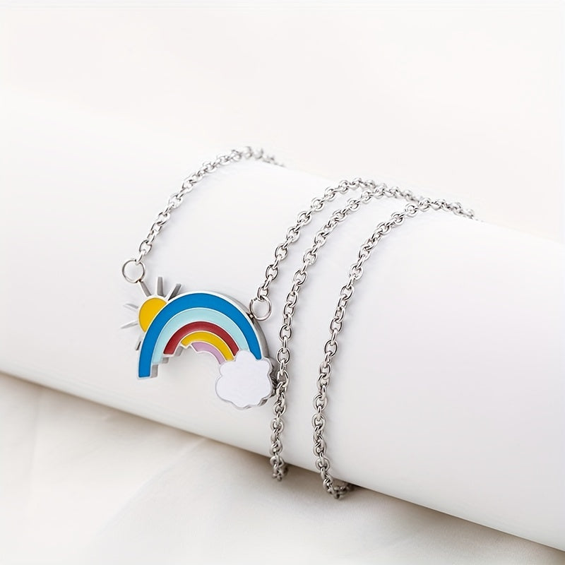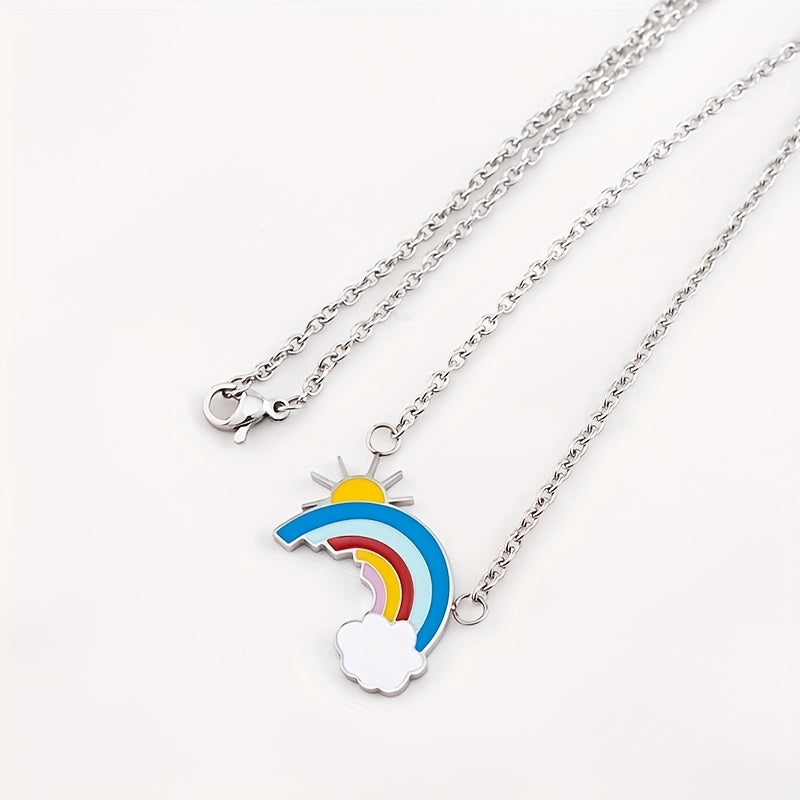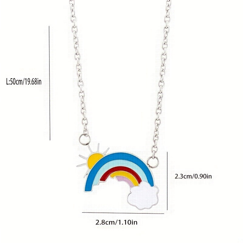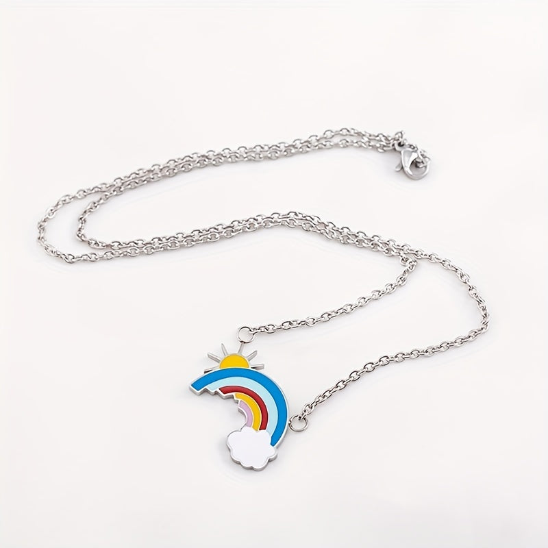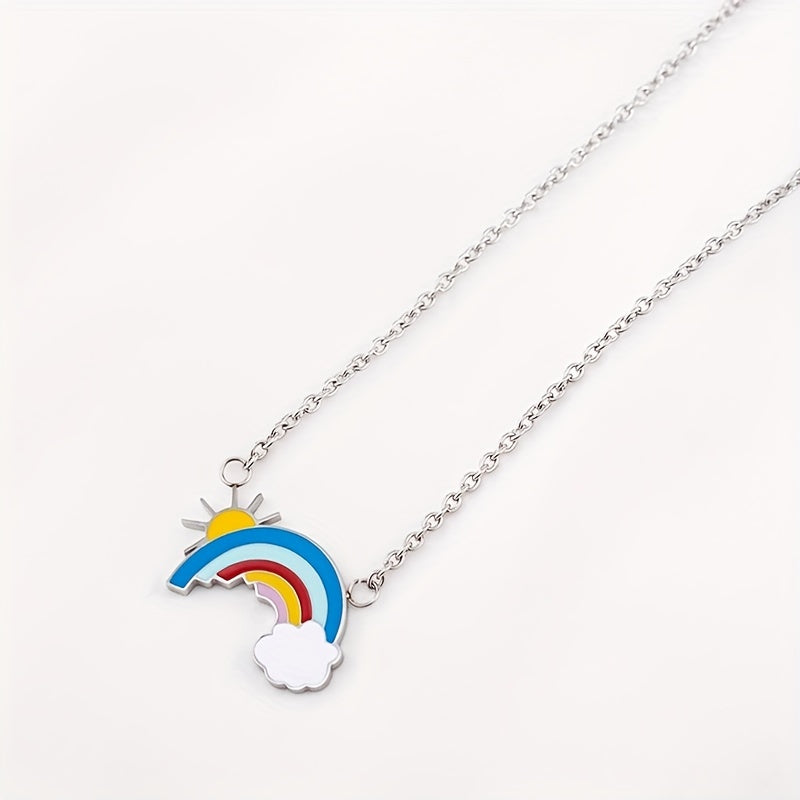 This sleek necklace features a charming design of a sunshine, rainbow, and cloud. It makes a perfect birthday gift for men with its silver-gray finish.