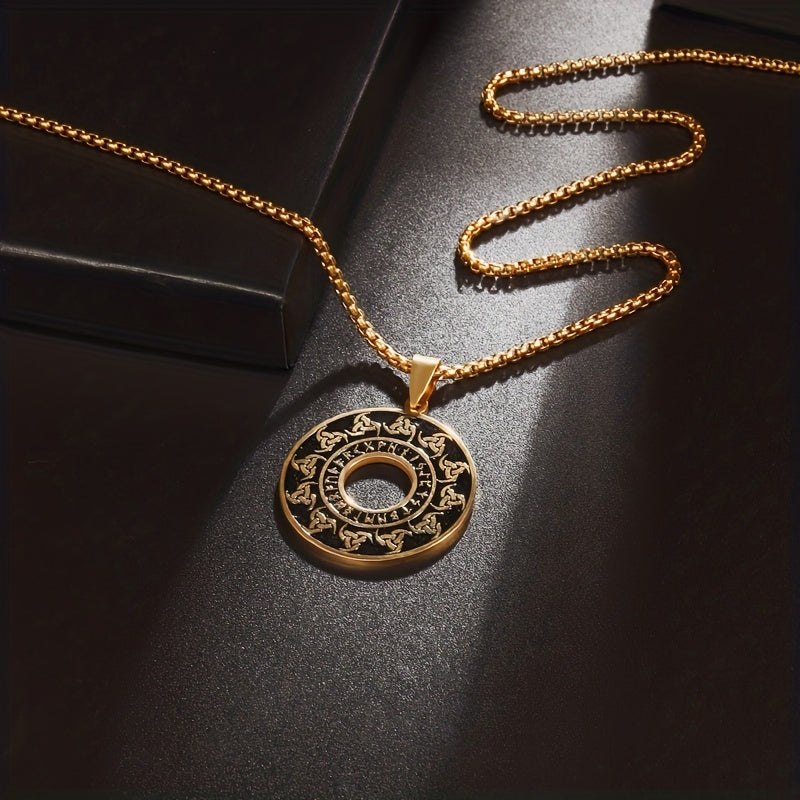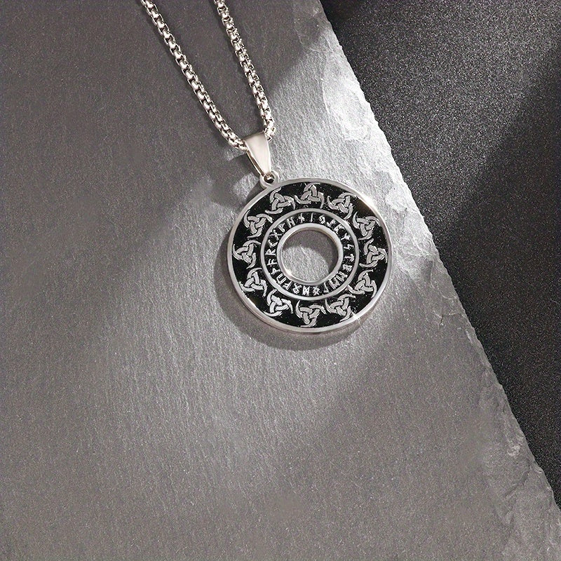 This stainless steel pendant necklace features a Celtic knot design on a round tag, making it a stylish accessory for daily wear. It makes a great jewelry gift for any occasion.