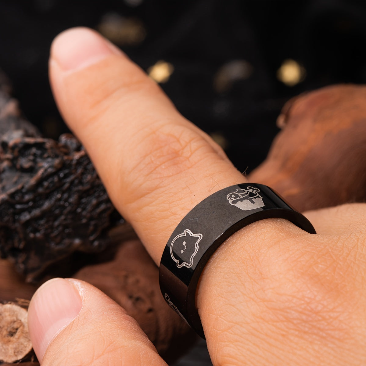 This men's stainless steel ring features a dark gothic design, making it a bold and stylish accessory.