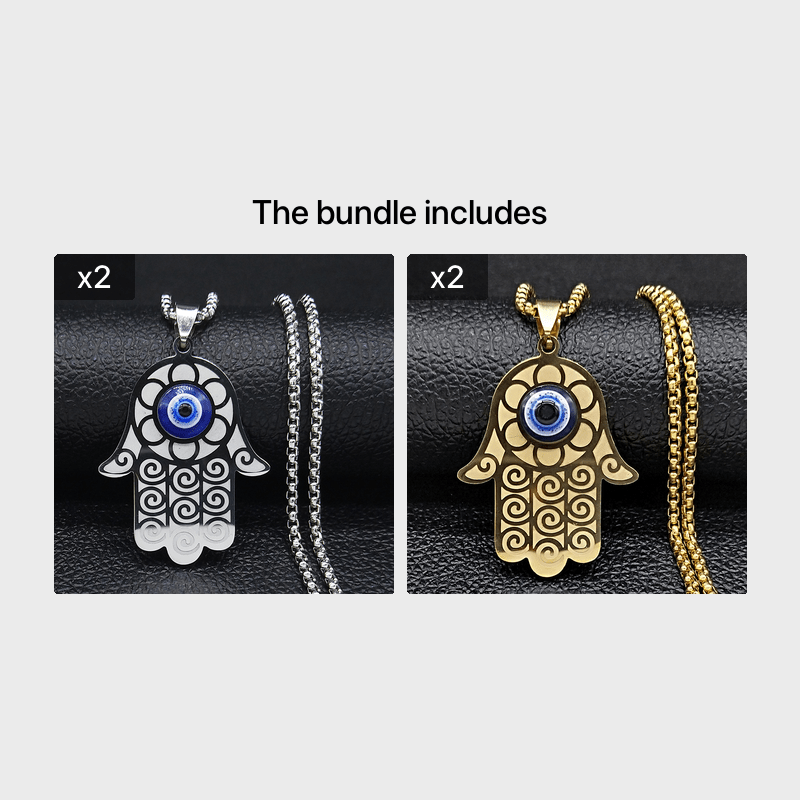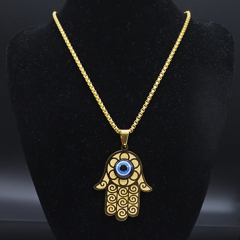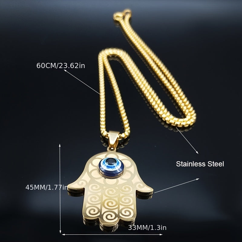 This necklace features a devil eye pendant and a Fatima hand amulet design, adding a touch of mystique to your style. Made of high-quality stainless steel, this necklace is durable and stylish.