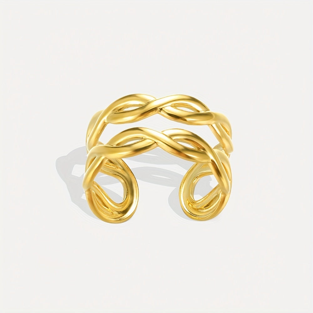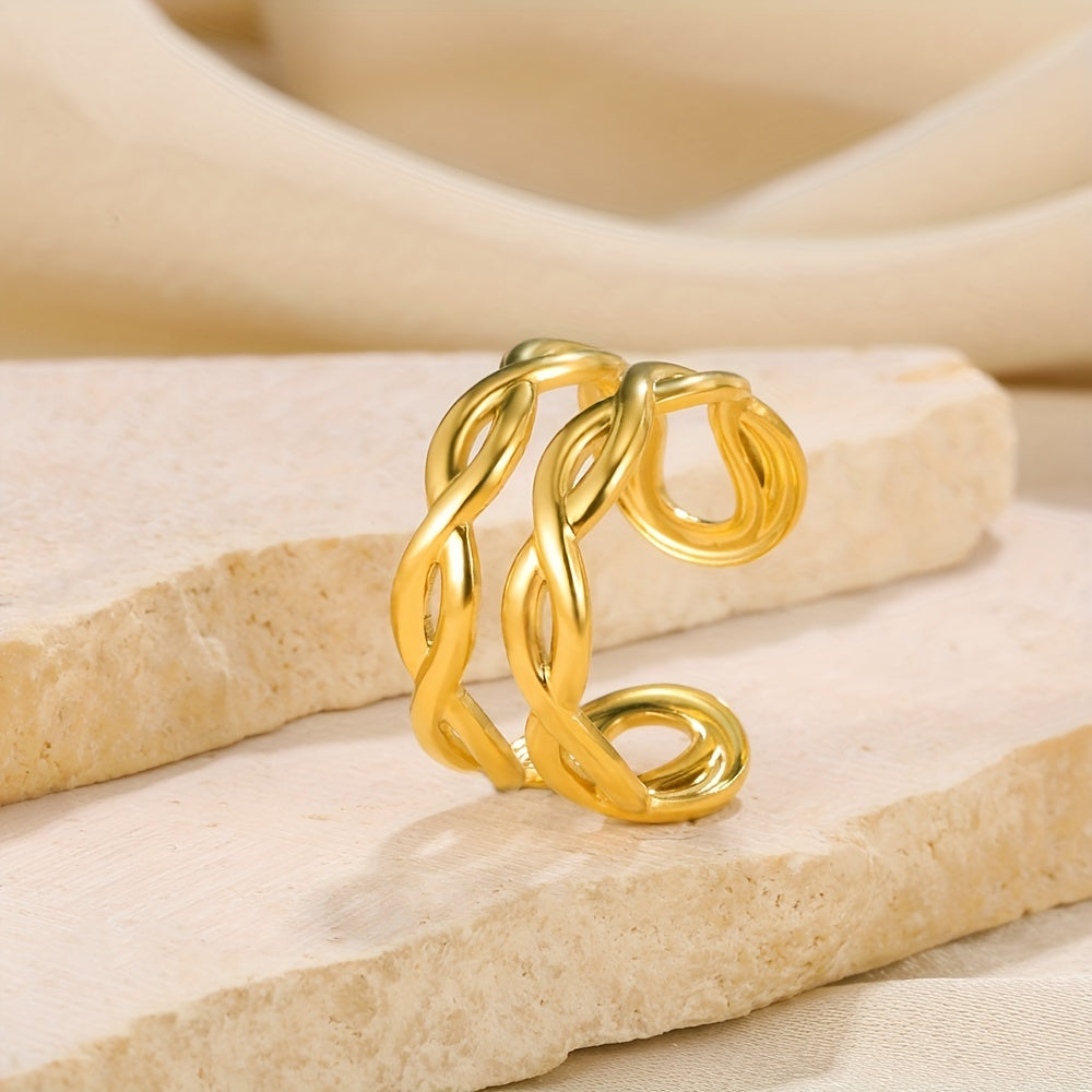 This stylish men's ring features a double layer twisted design. Crafted from durable stainless steel, it is adjustable to fit most finger sizes.