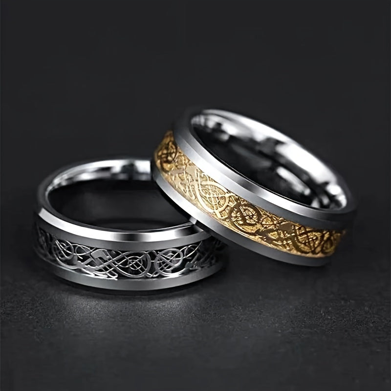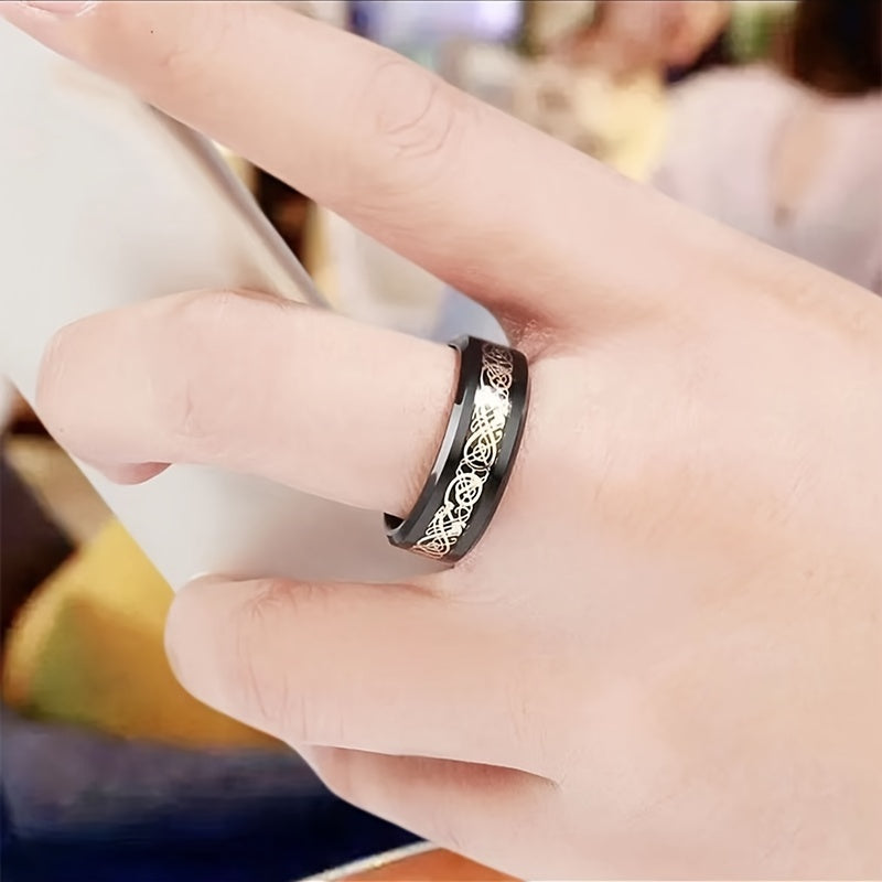 Embrace the vintage style with this stainless steel dragon ring featuring a unique patch pattern design.