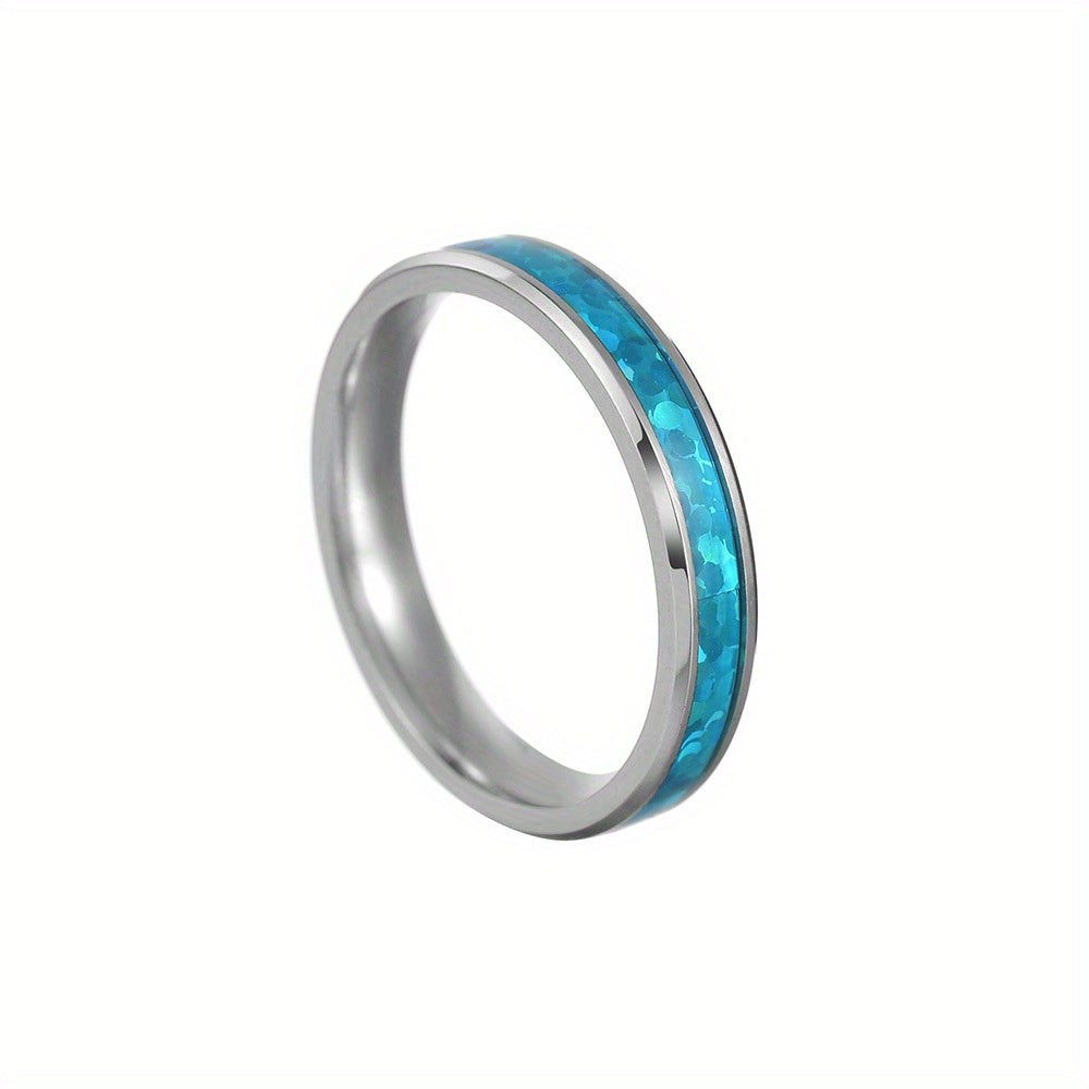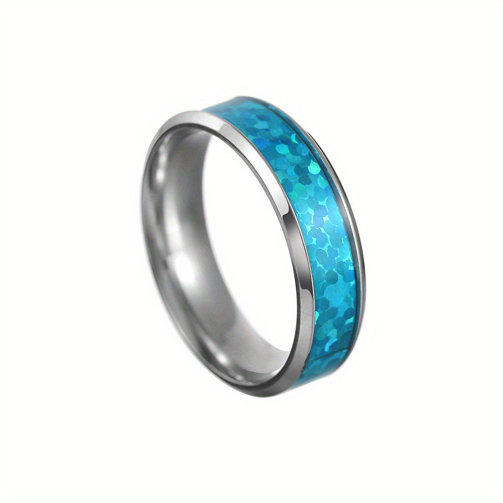 This stainless steel ring features a fire opal inlay, perfect for weddings and engagements. Available in sizes 4, 6, and 8mm.