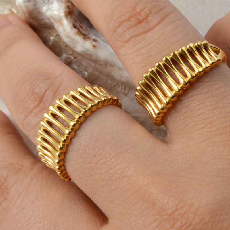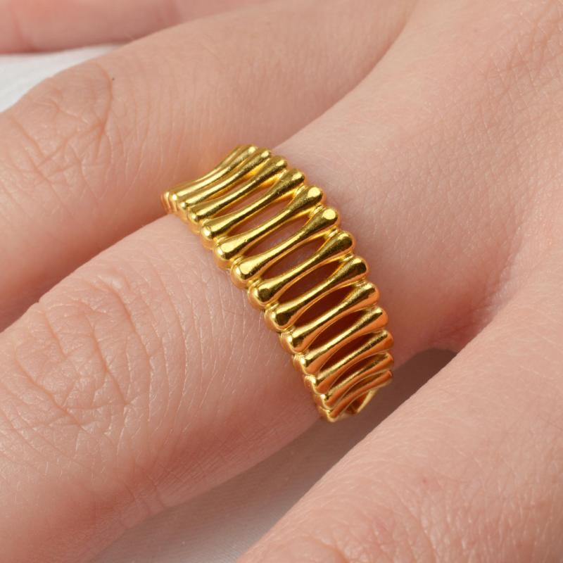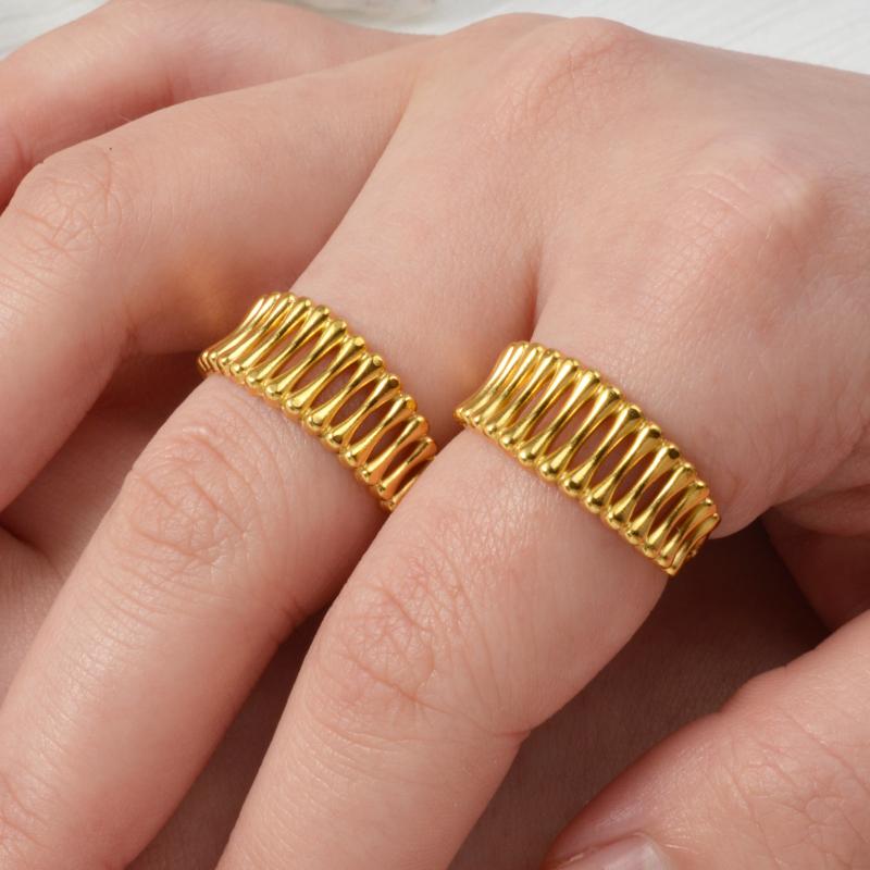 This ring is a fashionable and versatile accessory suitable for both men and women. It features a unique geometric bone design crafted from stainless steel.