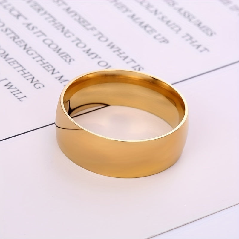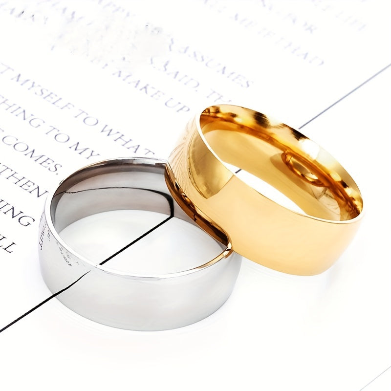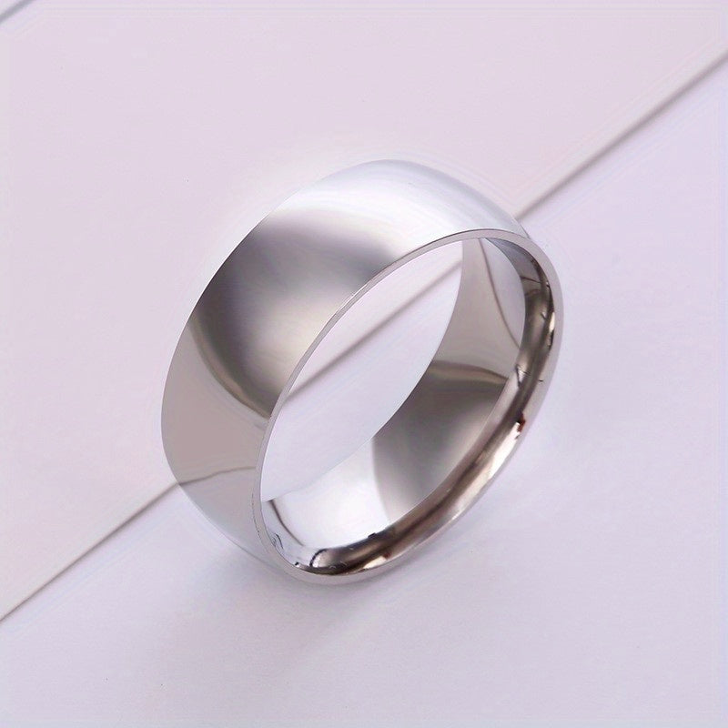This minimalist ring is crafted from stainless steel with a glossy finish, perfect for couples.