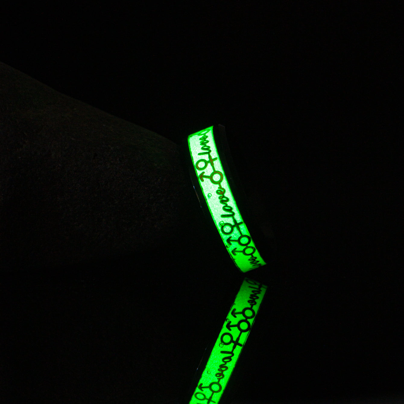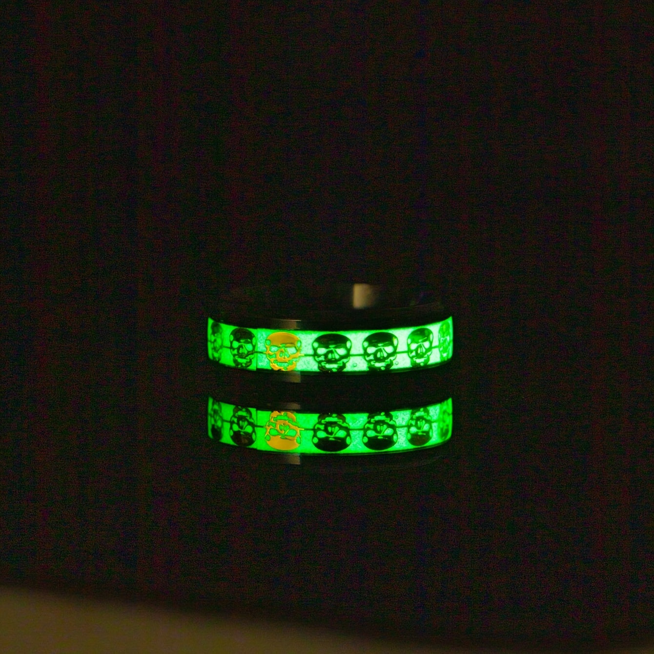 This unique ring features a glowing skull design on a checkered background, crafted from stainless steel for durability and style.