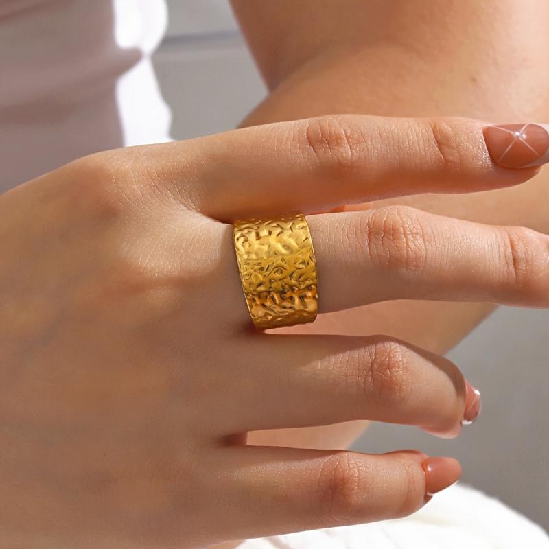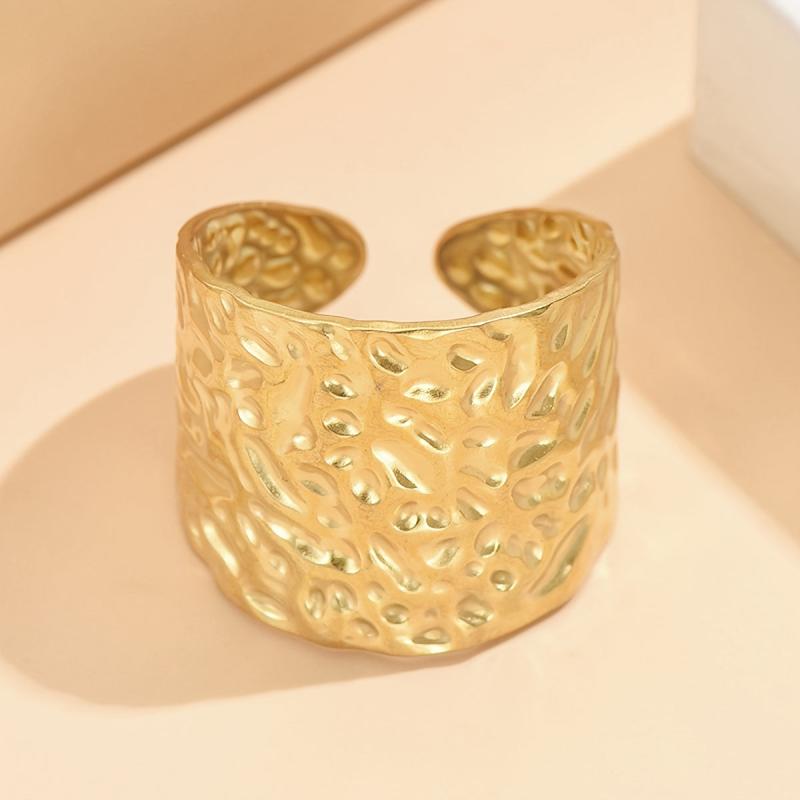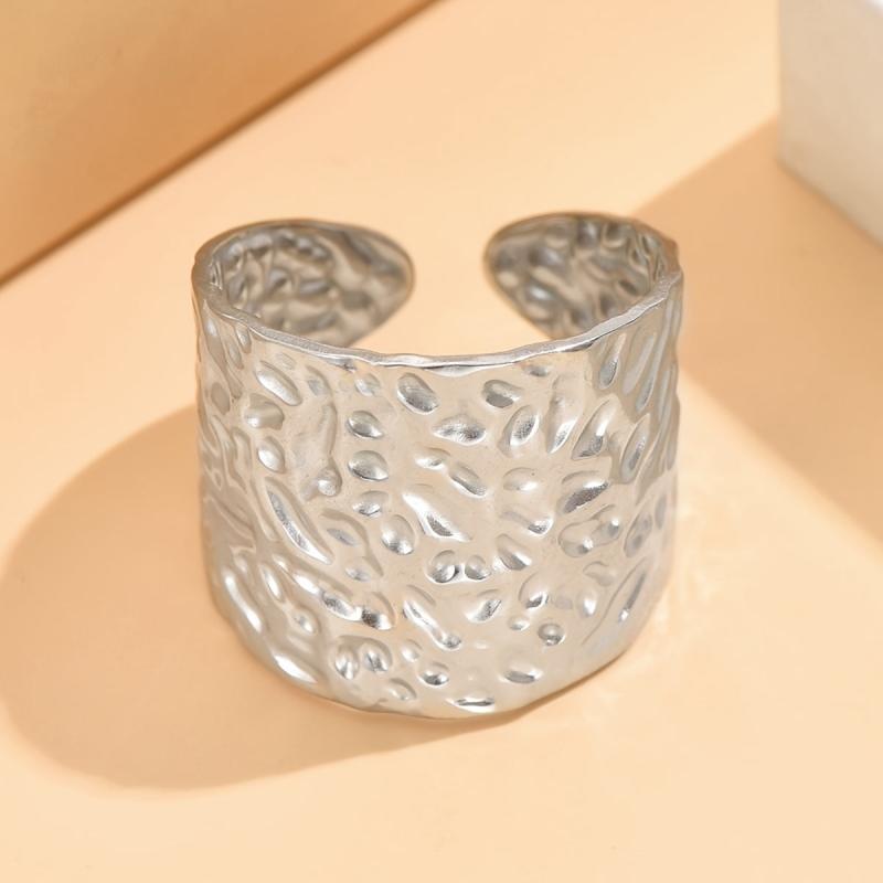 This men's stainless steel ring features a stylish hammered texture design that adds a touch of sophistication to any outfit.