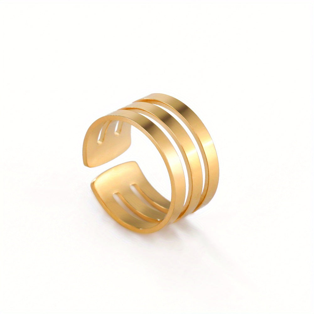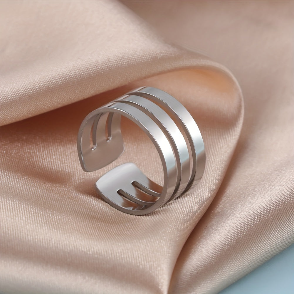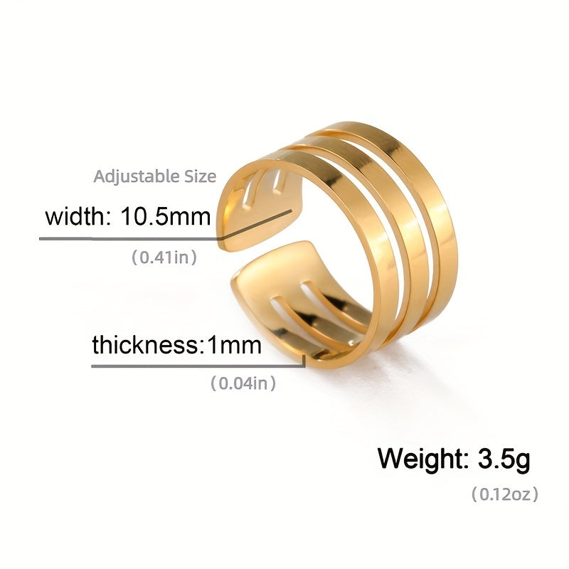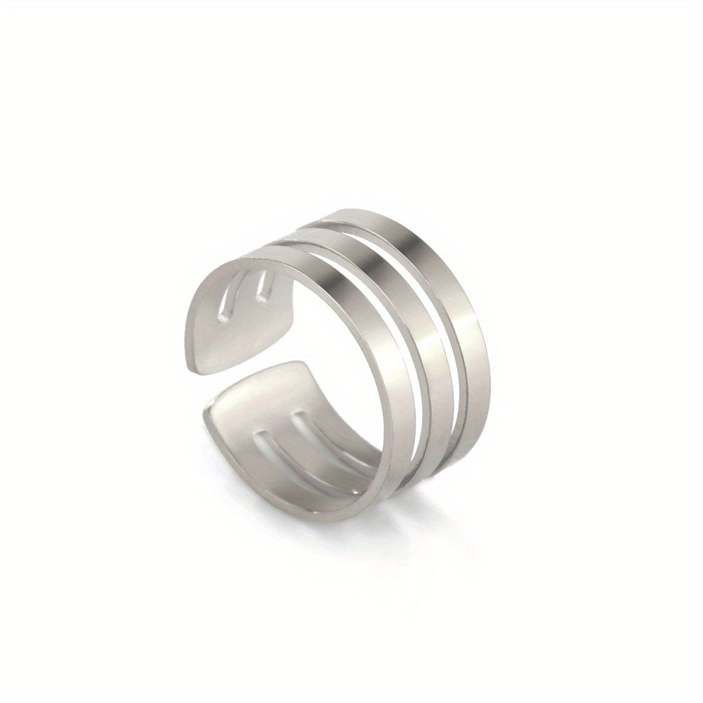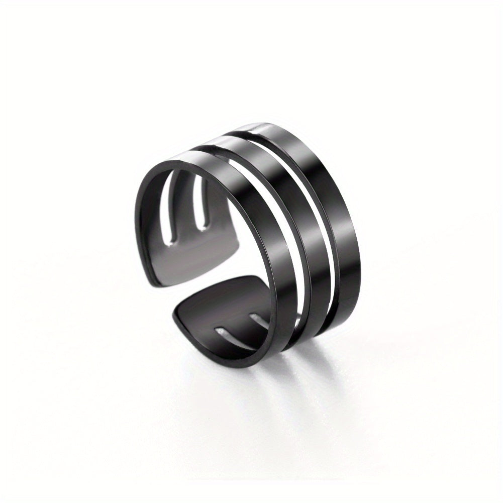 This stylish double layer ring features a unique circular cut design. Crafted from durable stainless steel, this adjustable ring makes a great anniversary gift for men.