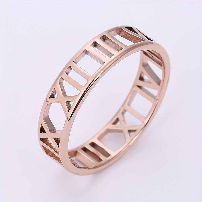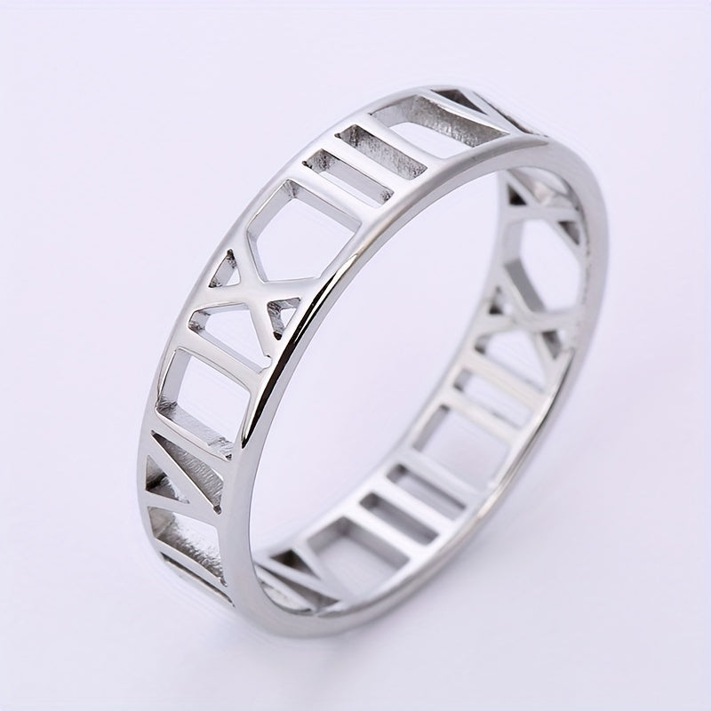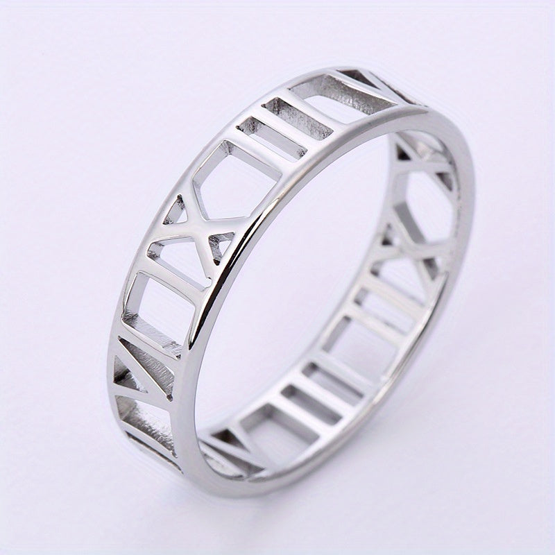 This men's ring features intricate hollow design with Roman numerals, made of stainless steel. Perfect for parties or as a gift.