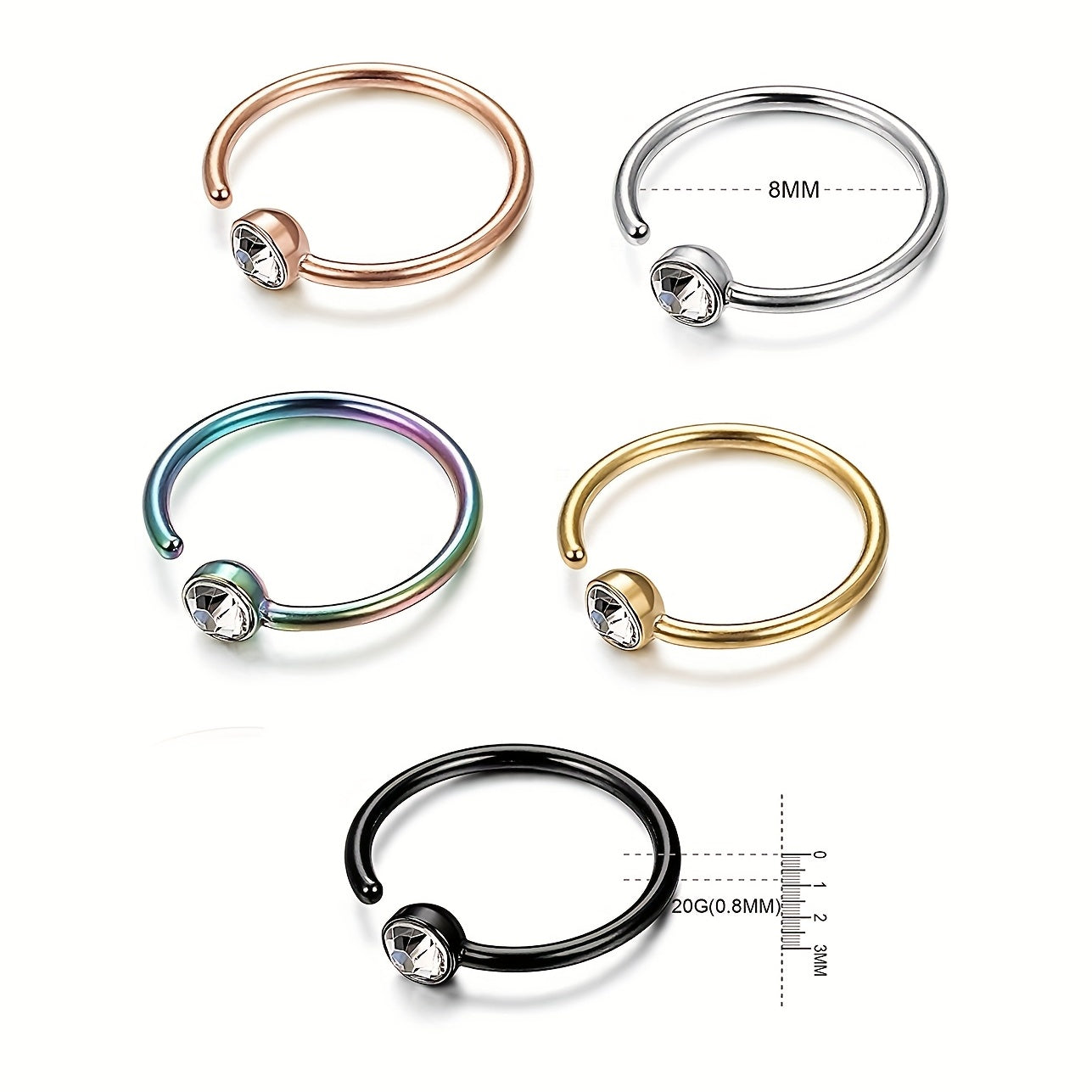 Add a touch of style with this men's C-shaped nose ring featuring faux diamond studs. Made of high-quality stainless steel.
