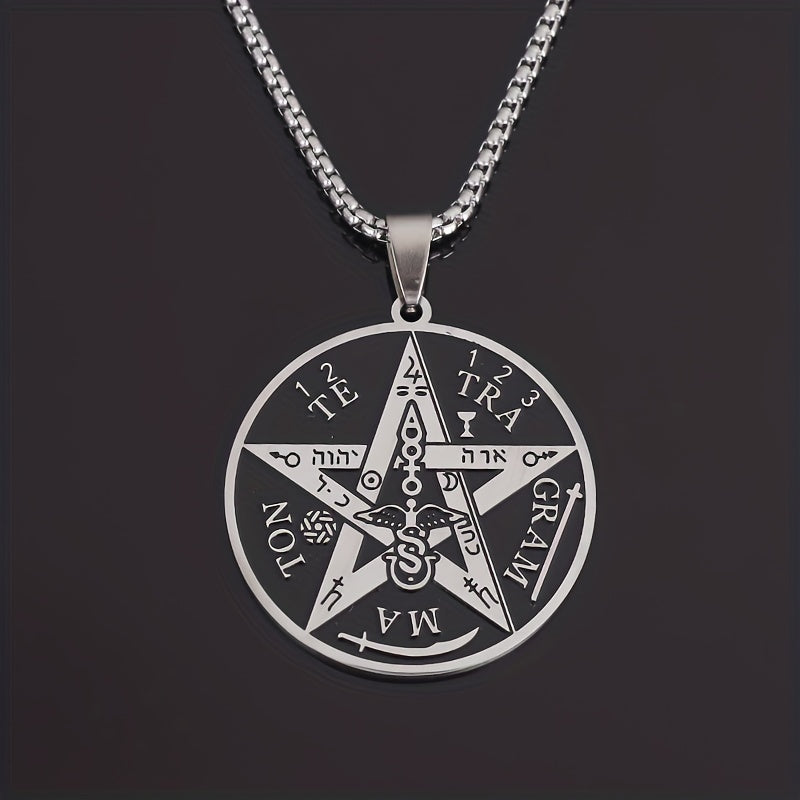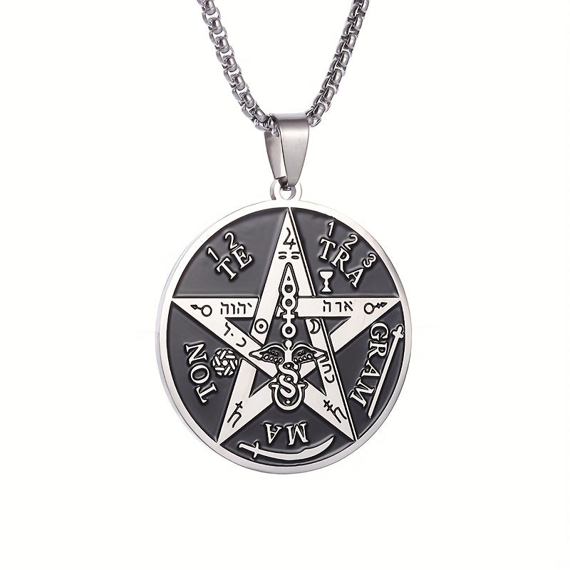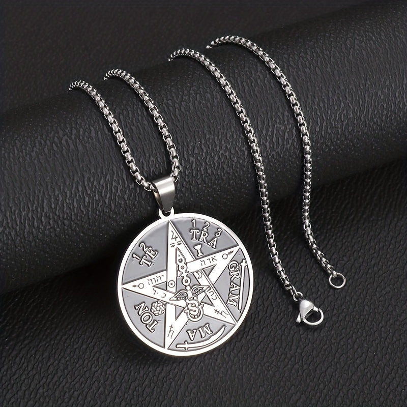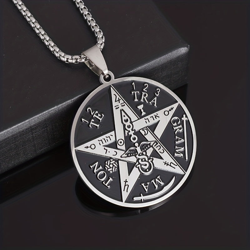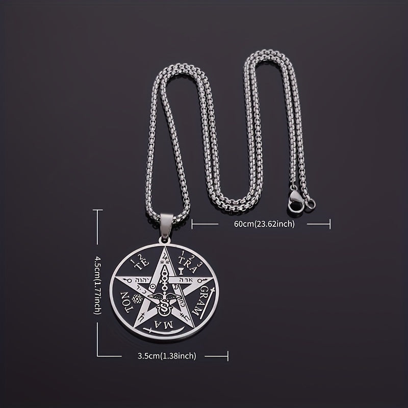 A classic vintage necklace for men featuring a pentagram rune pendant. Ideal for daily wear, casual outings, parties, rock concerts, and as a personality amulet jewelry gift.